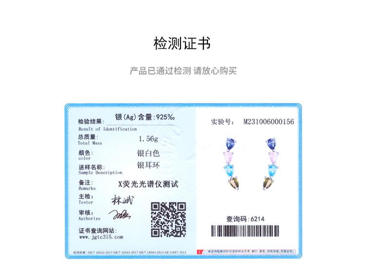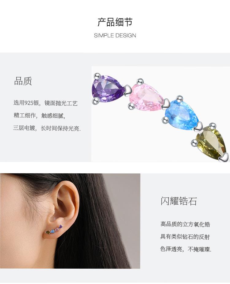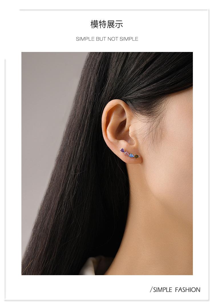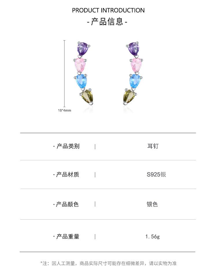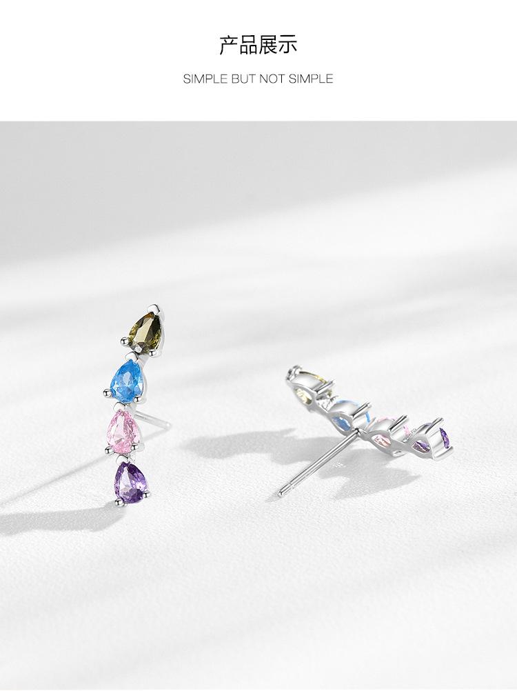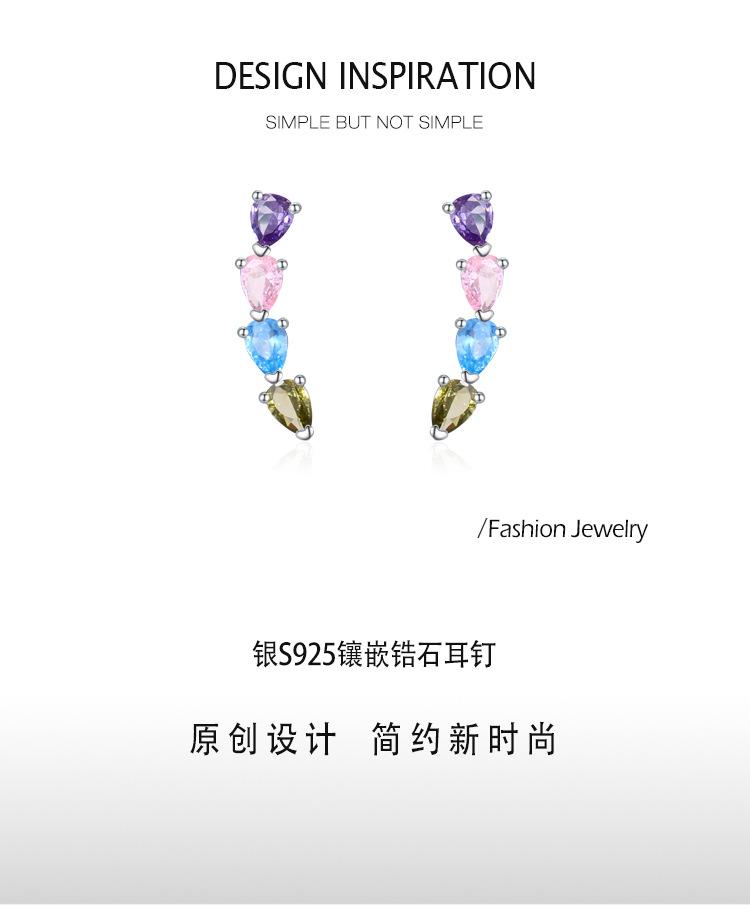 Pendientes de plata S925 con forma de gota de circonita arcoíris para mujer, estilo europeo y americano, con diseño de nicho ligero y de lujo, estilo frío.