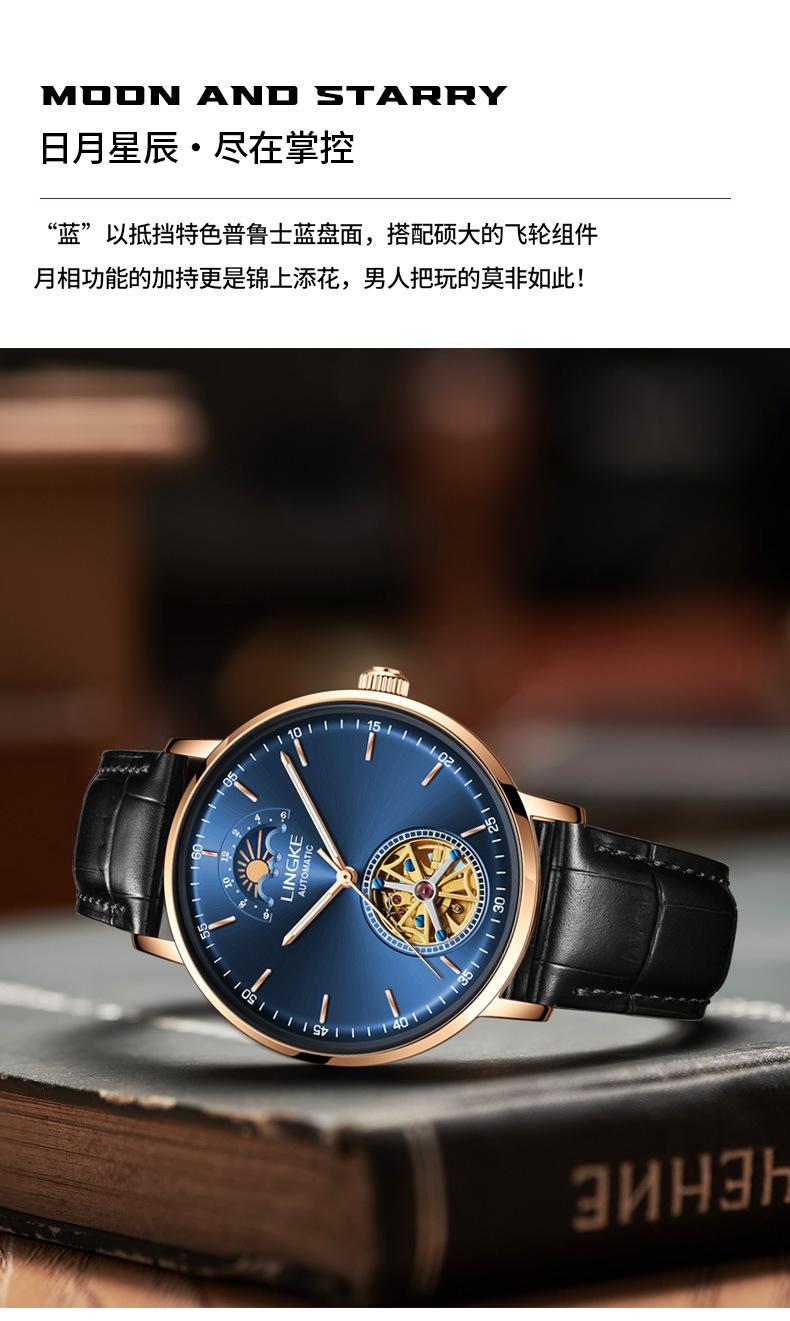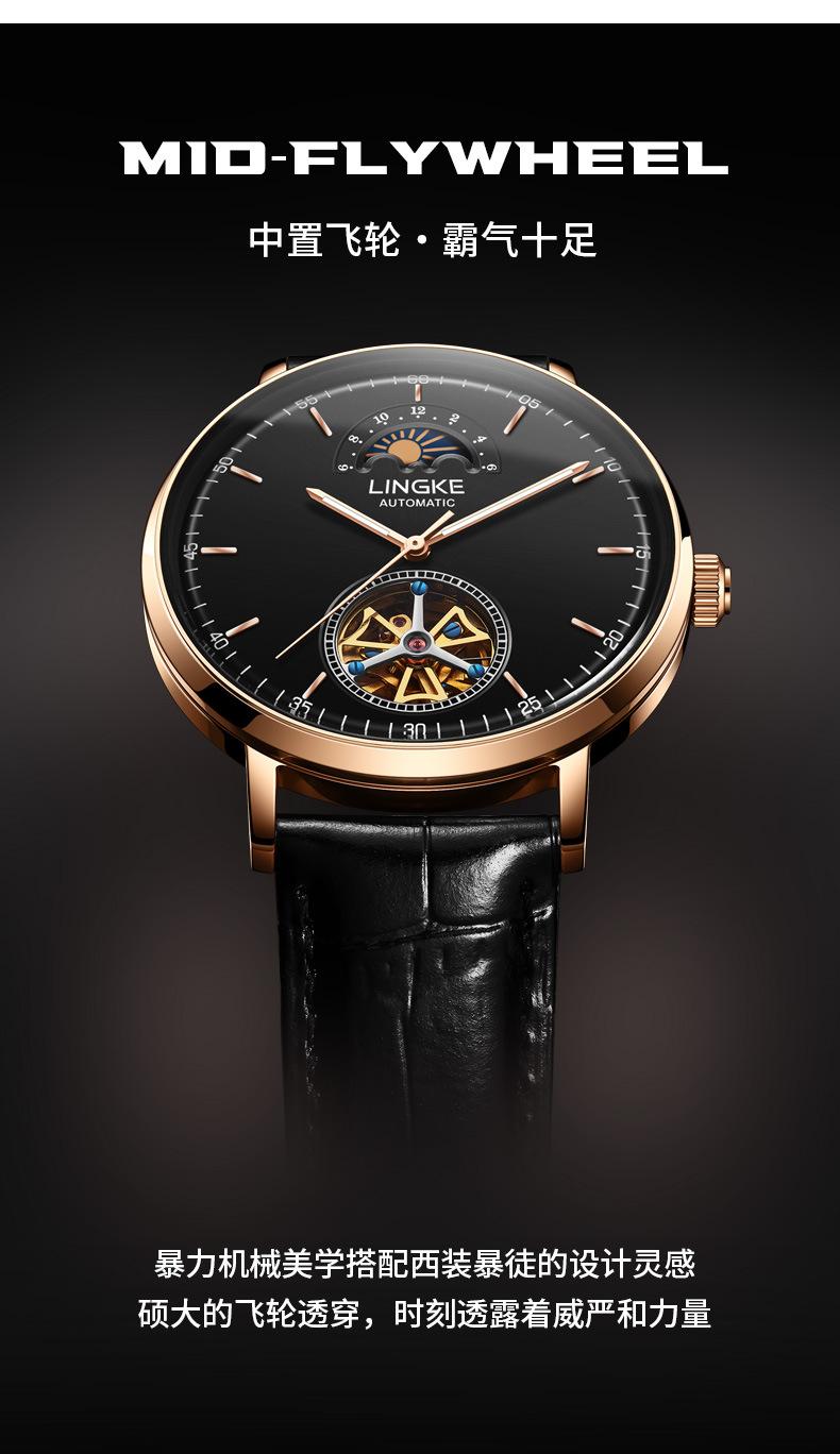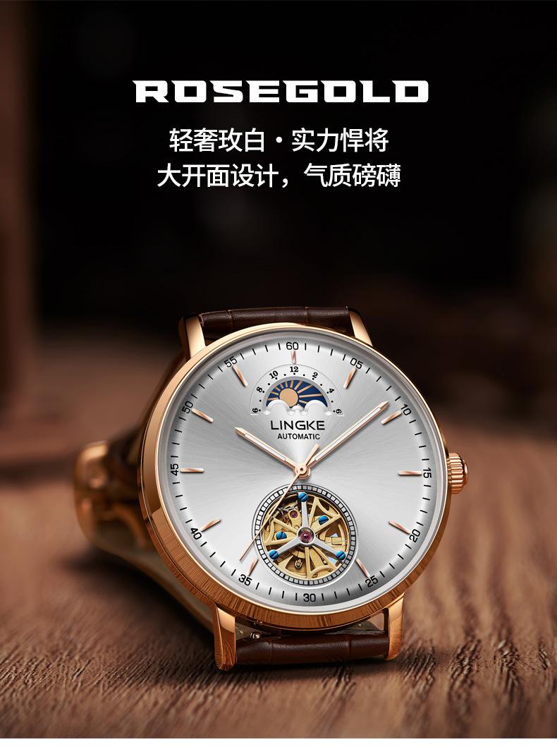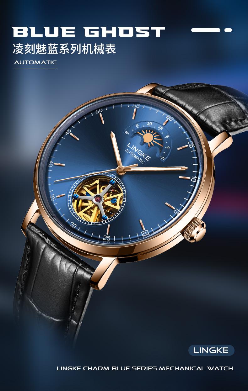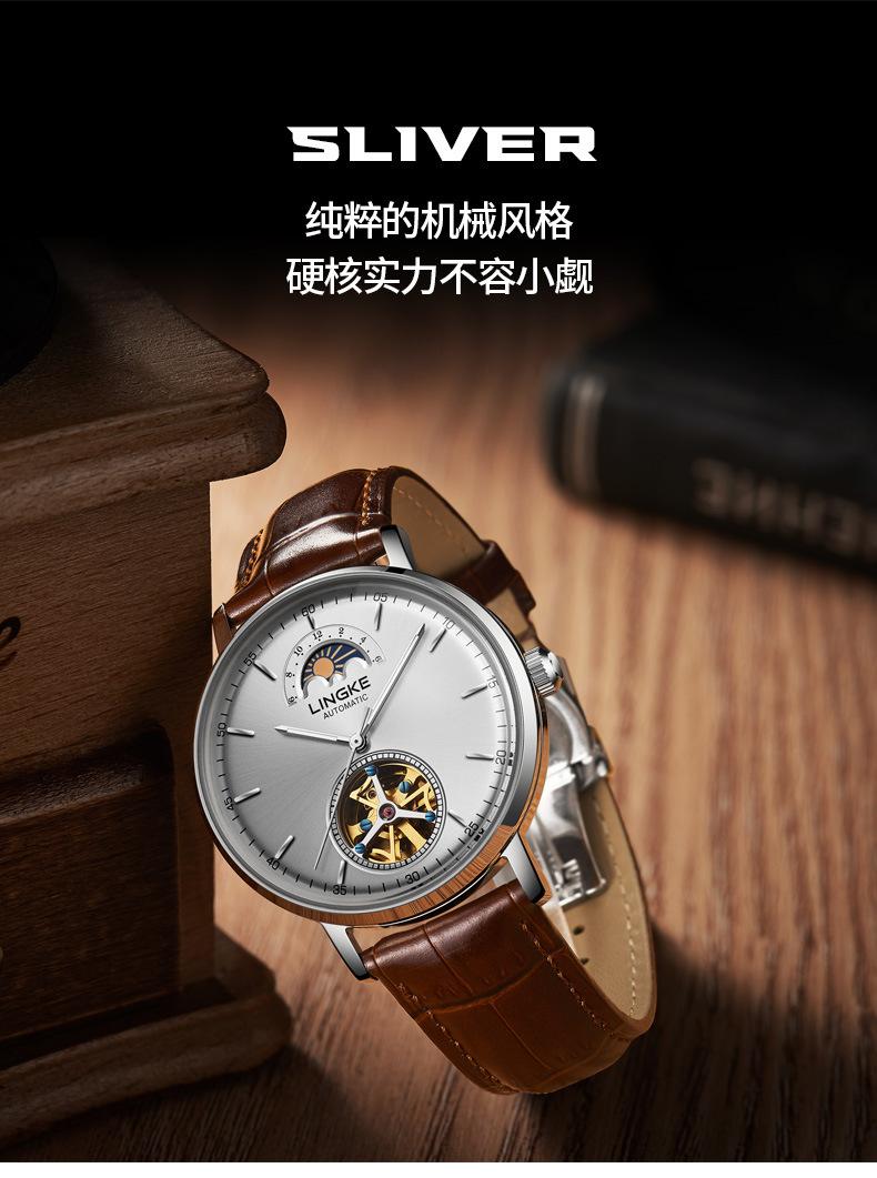 Reloj mecánico automático transfronterizo Lingke para hombre, reloj de cuero de acero inoxidable de alta gama, resistente al agua y a la moda.