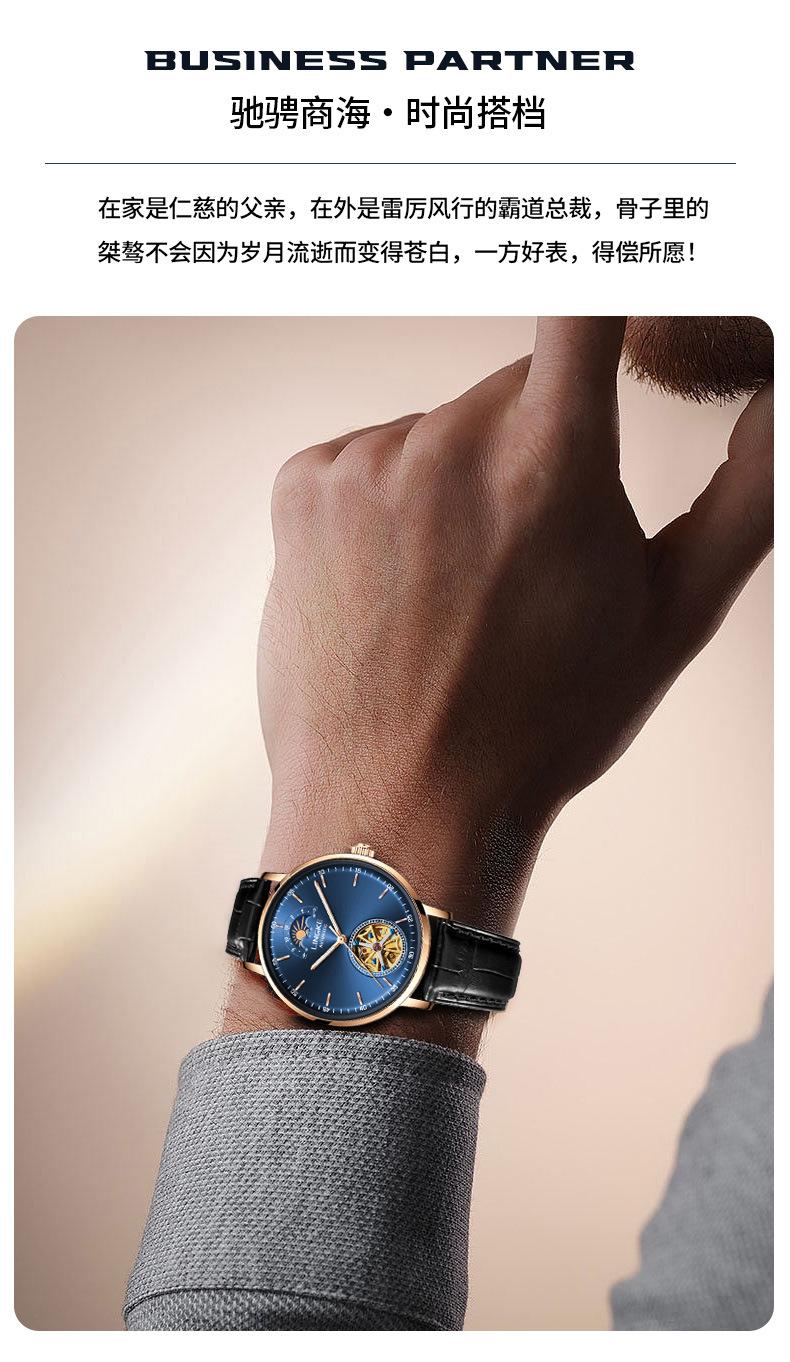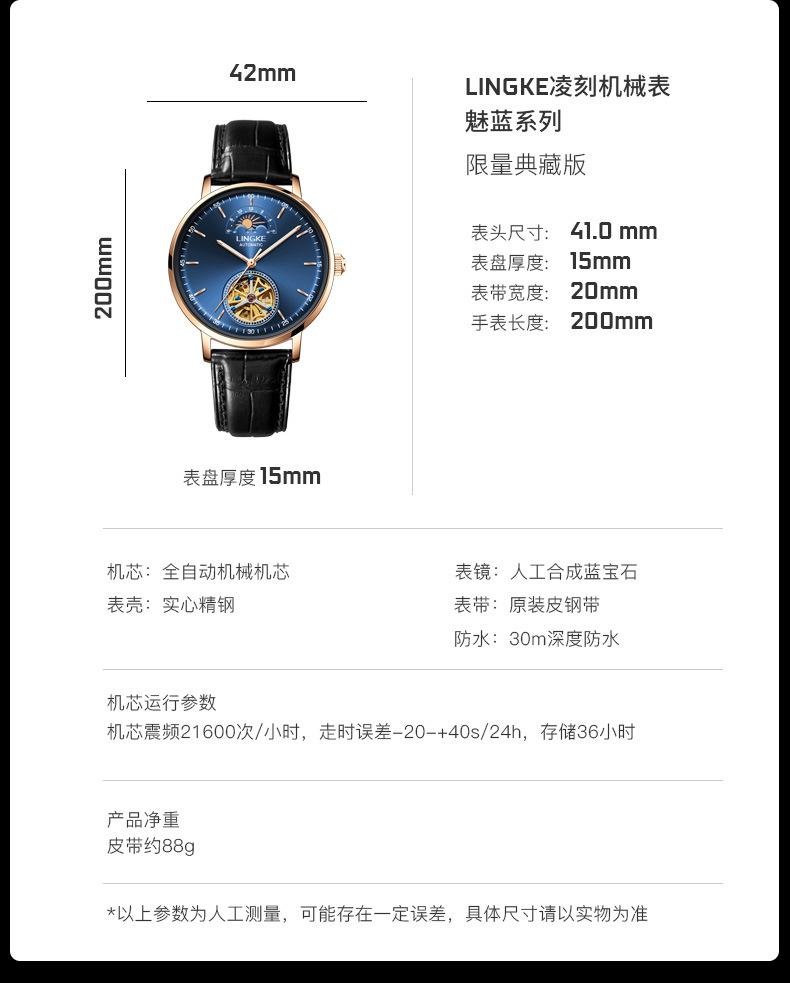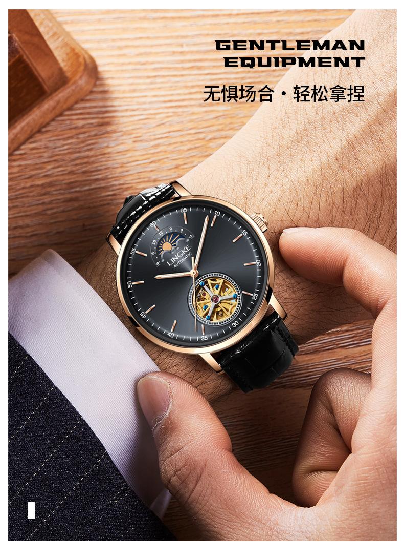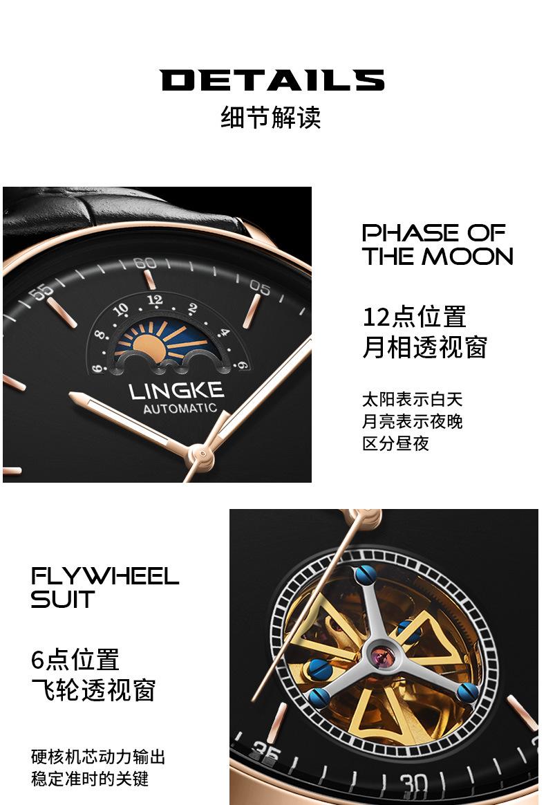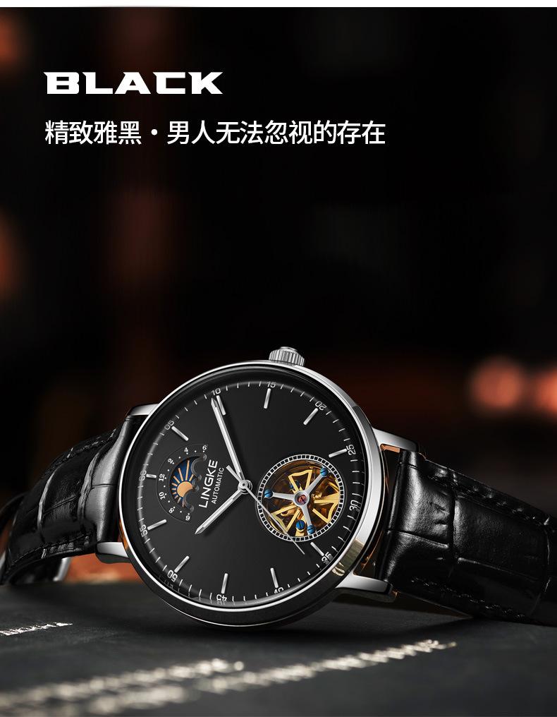 Reloj mecánico automático transfronterizo Lingke para hombre, reloj de cuero de acero inoxidable de alta gama, resistente al agua y a la moda.
