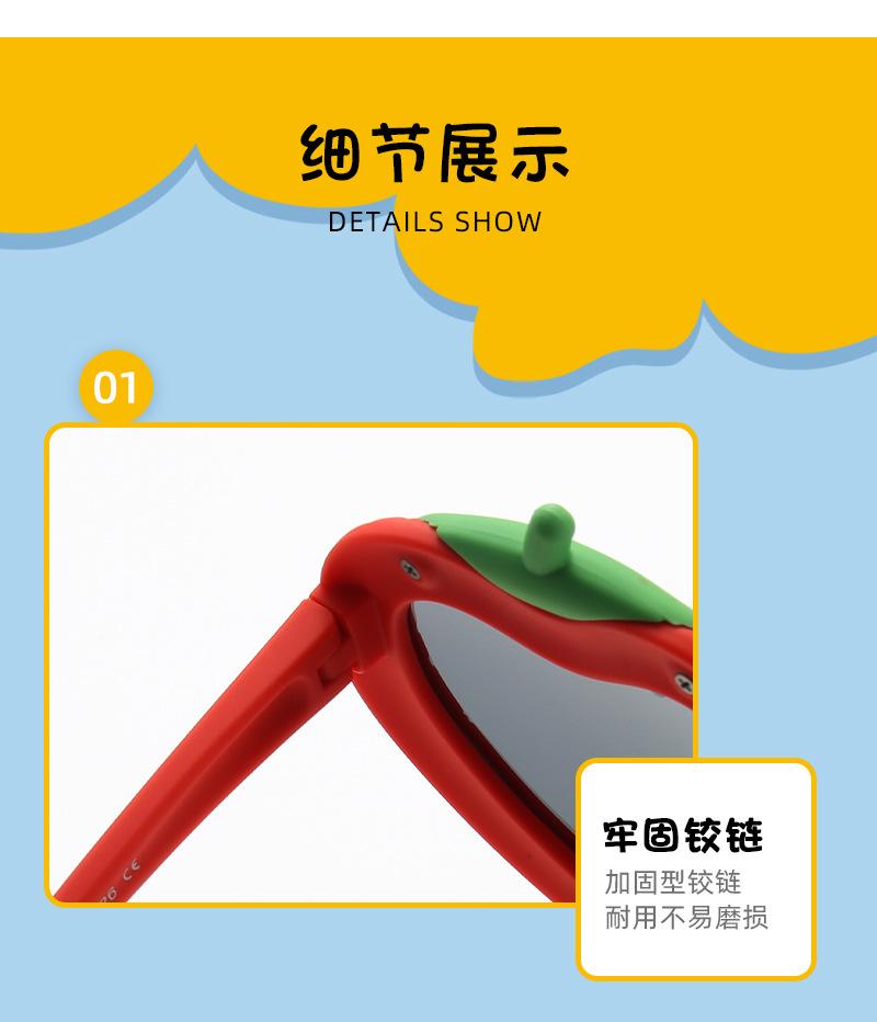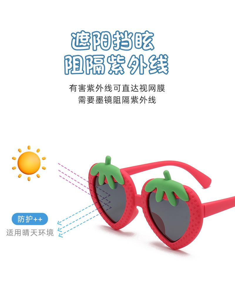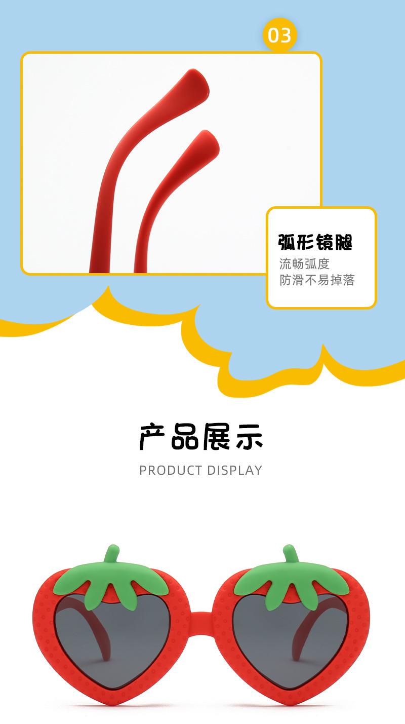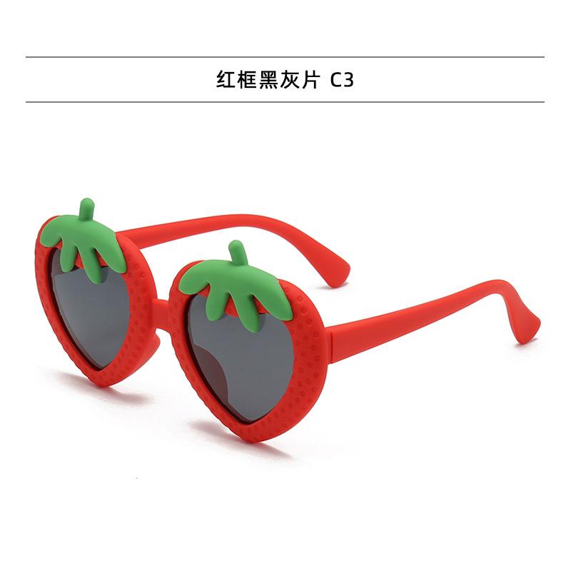 Nuevas gafas de sol polarizadas para niños, venta al por mayor, gafas de sol de moda con dibujos de fresas, gafas de sol de silicona