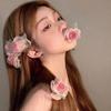 Arroz de hadas albaricoque ~ pasador de lazo para el cabello femenino Perla flequillo clip Francés Corea del Sur Dongdaemun adorno para la cabeza que combina con todo