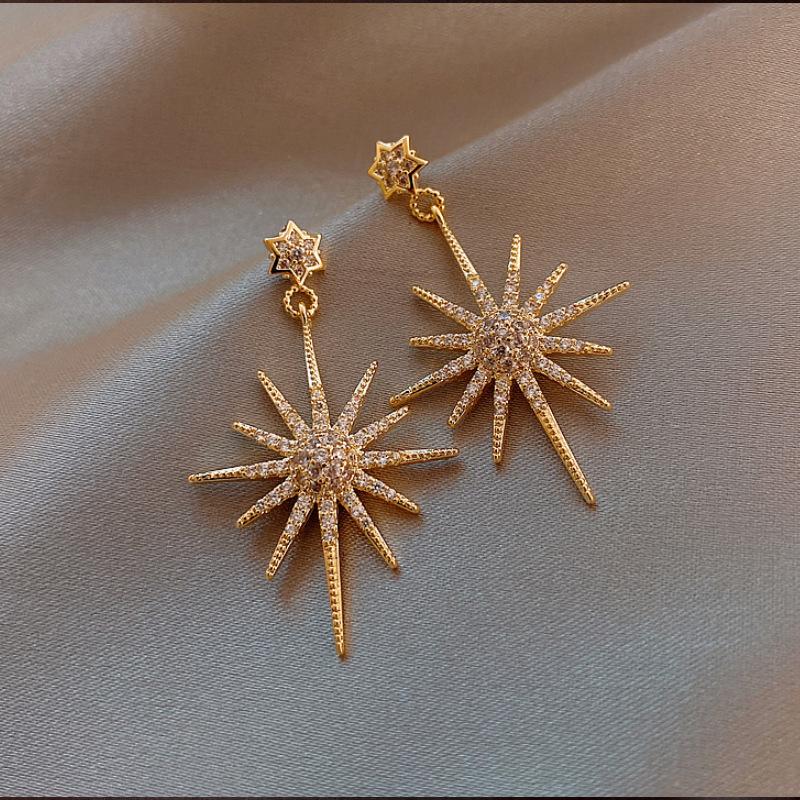 Pendientes de plata S925 con microincrustaciones de circonitas y diamantes brillantes para mujer, aretes con borlas de estrella roja de Internet para hombre, elegantes aretes coreanos que combinan con todo.