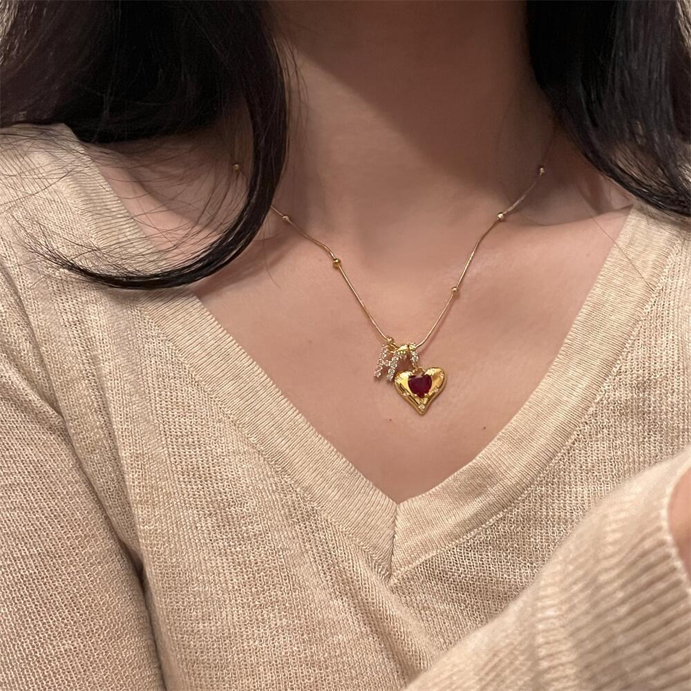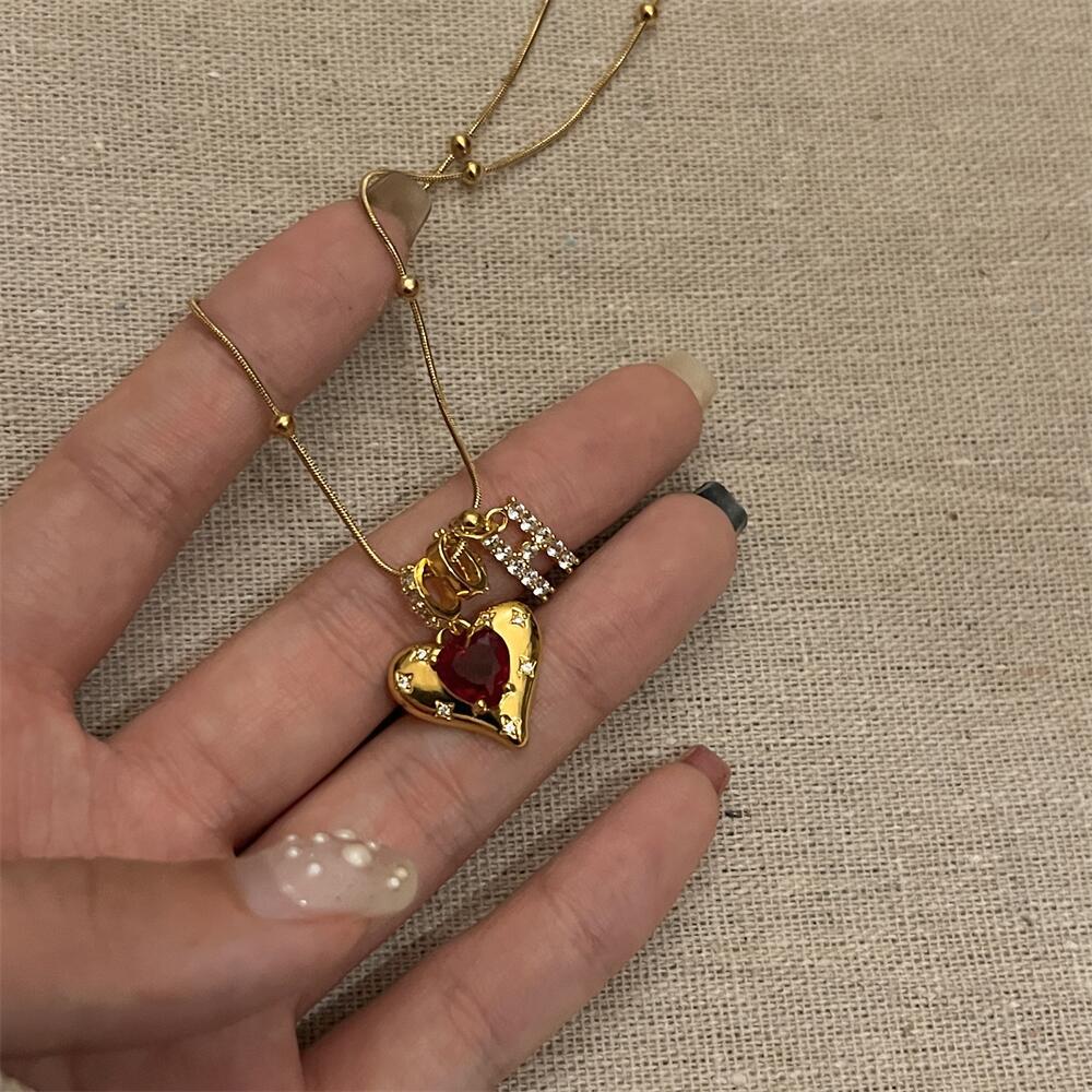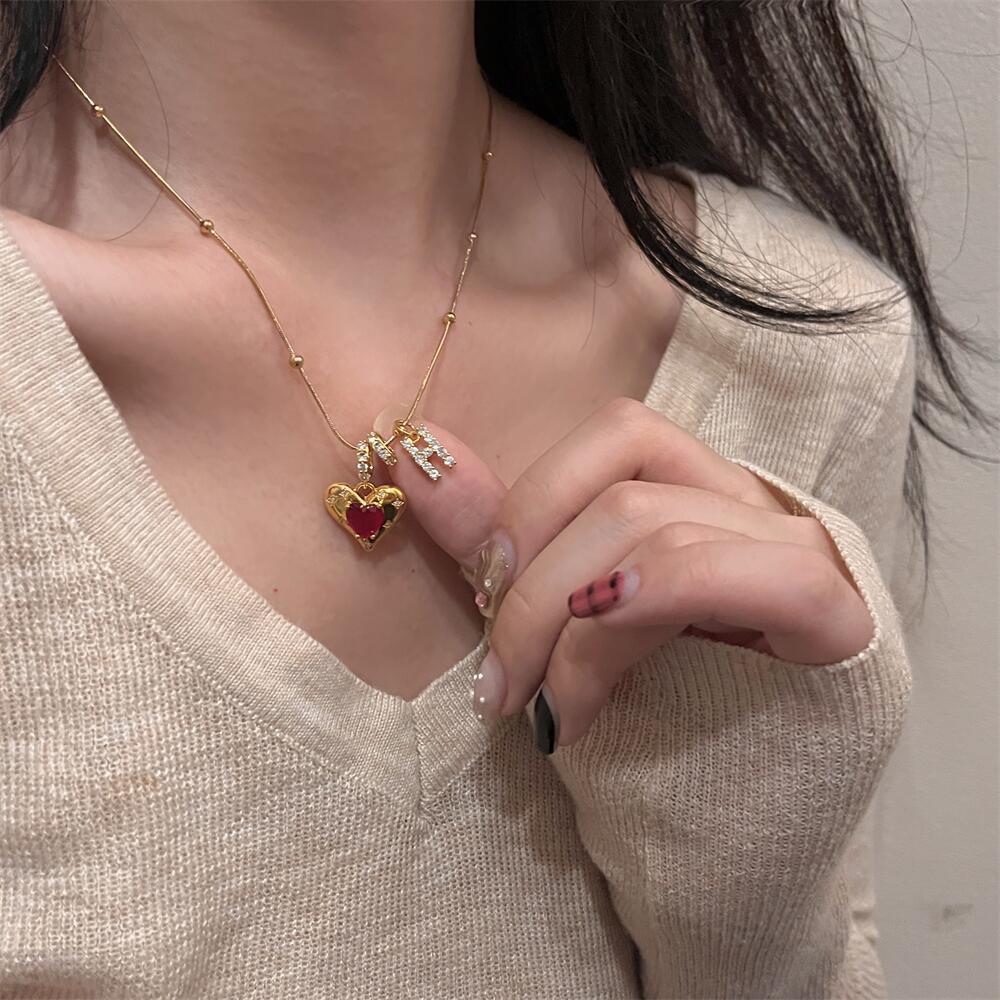 Collar con colgante de circonita con letra H y rubí, estilo retro industrial, cadena de clavícula, estilo francés retro de moda.