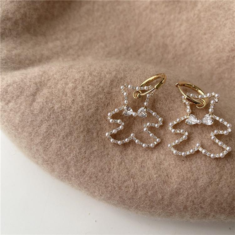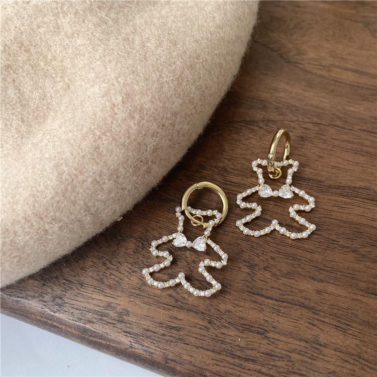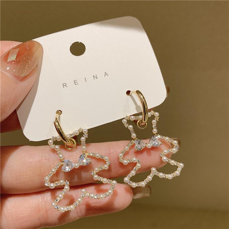 Agitar los mismos pendientes de oso de perla coreana pendientes 2022 nuevos pendientes de mujer de alto sentido del temperamento