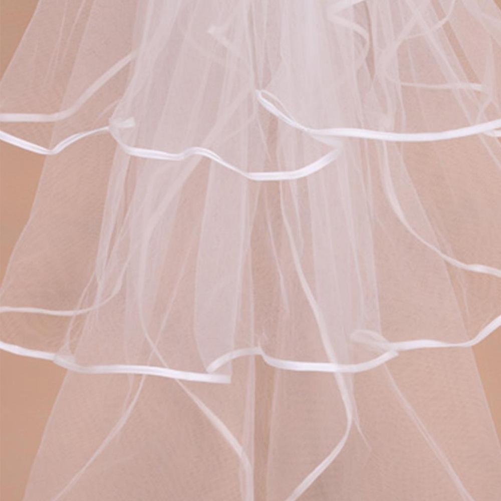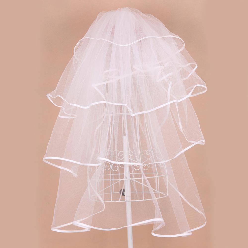 Velo de Novia Europeo y Americano, Accesorios para Vestido de Boda, Velo, Tocado Nupcial de Encaje Europeo y Americano Corto con Borde de Cuatro Capas