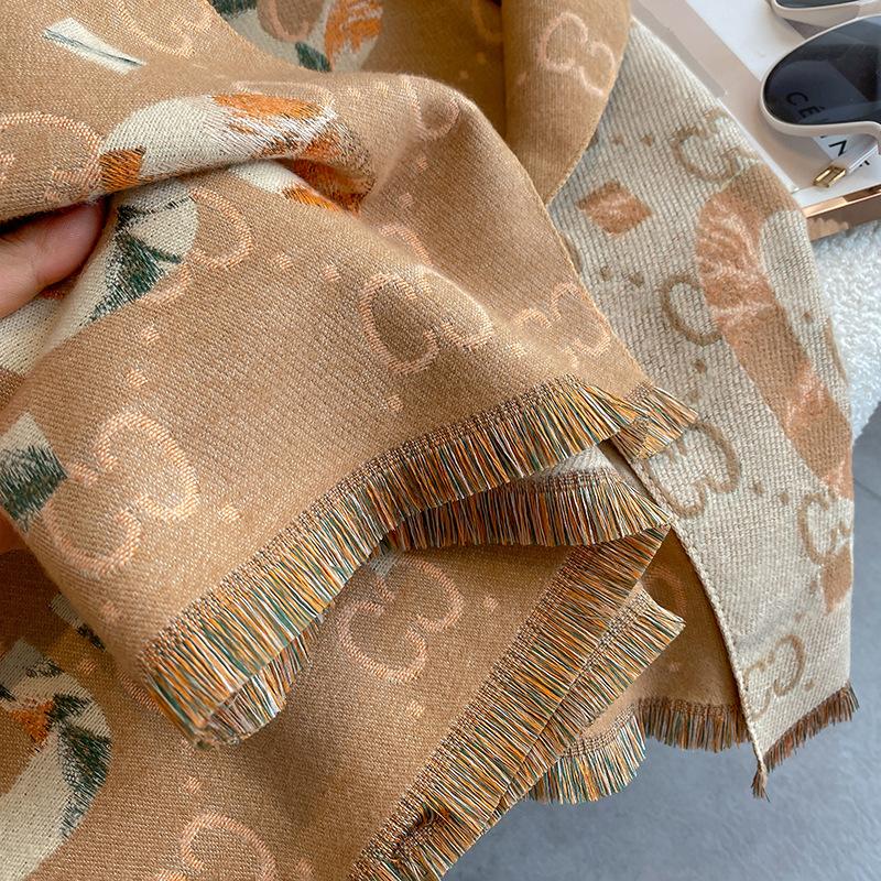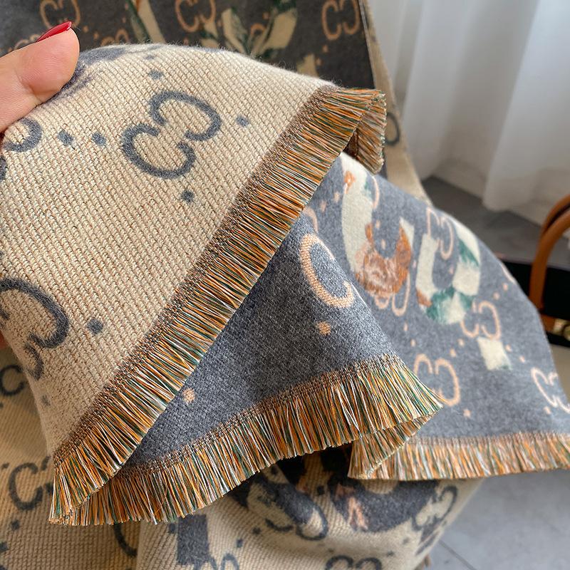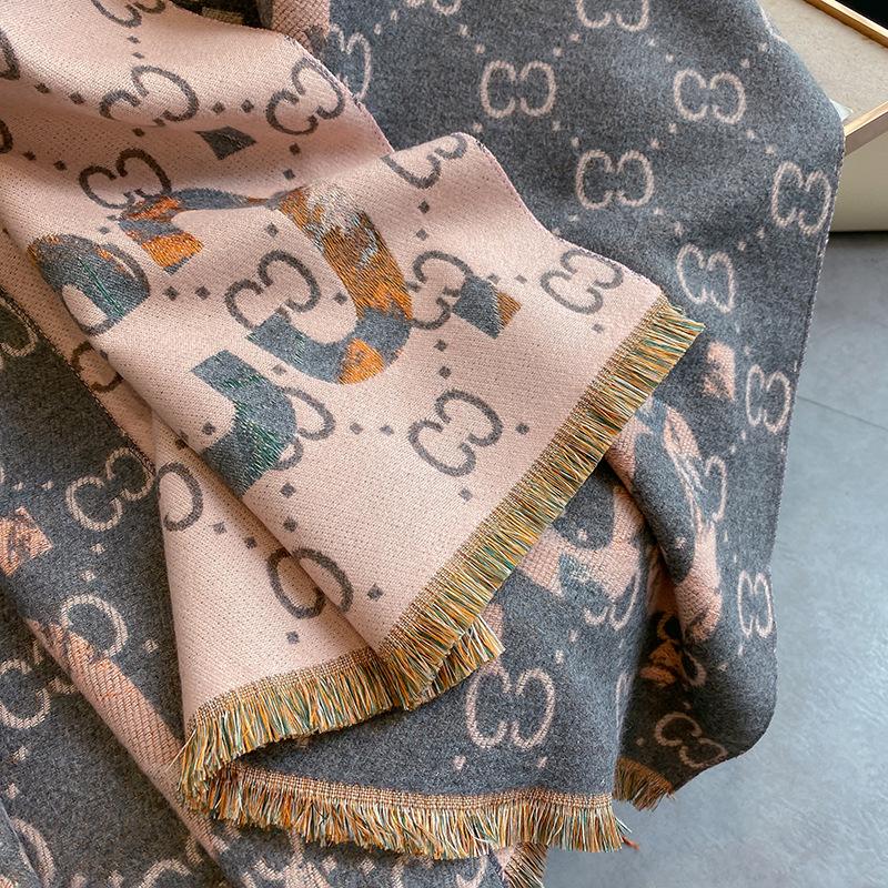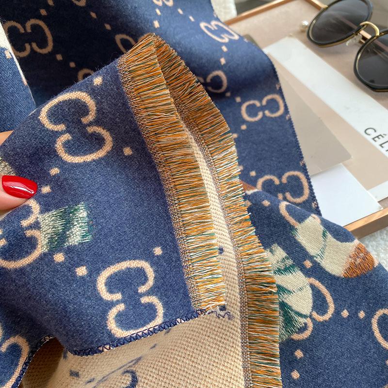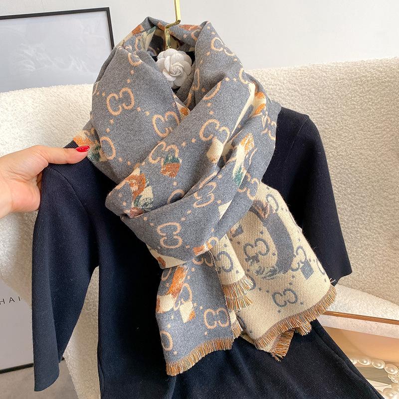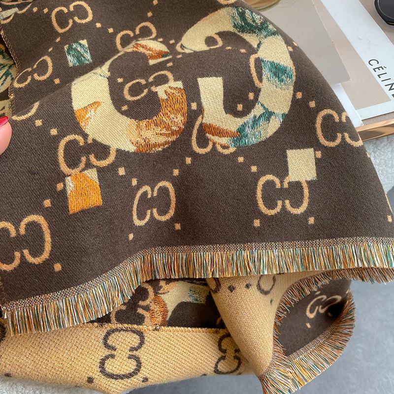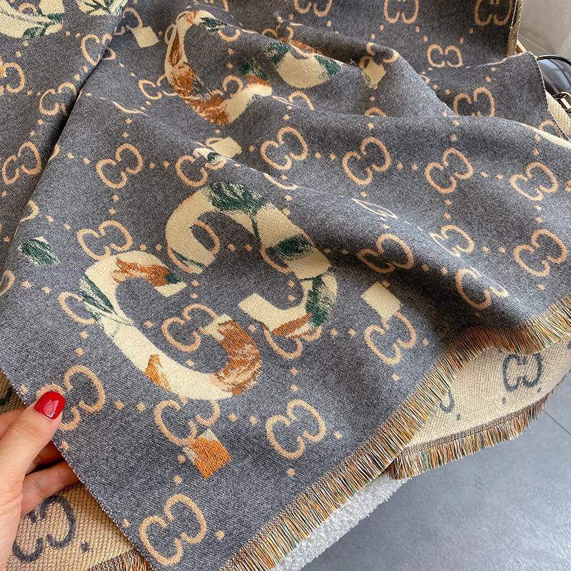 Bufanda de doble cara con letras nuevas de 2023 para mujer, estilo otoño e invierno, estilo cachemir, chal cálido de longitud media y aire acondicionado de estilo europeo y americano