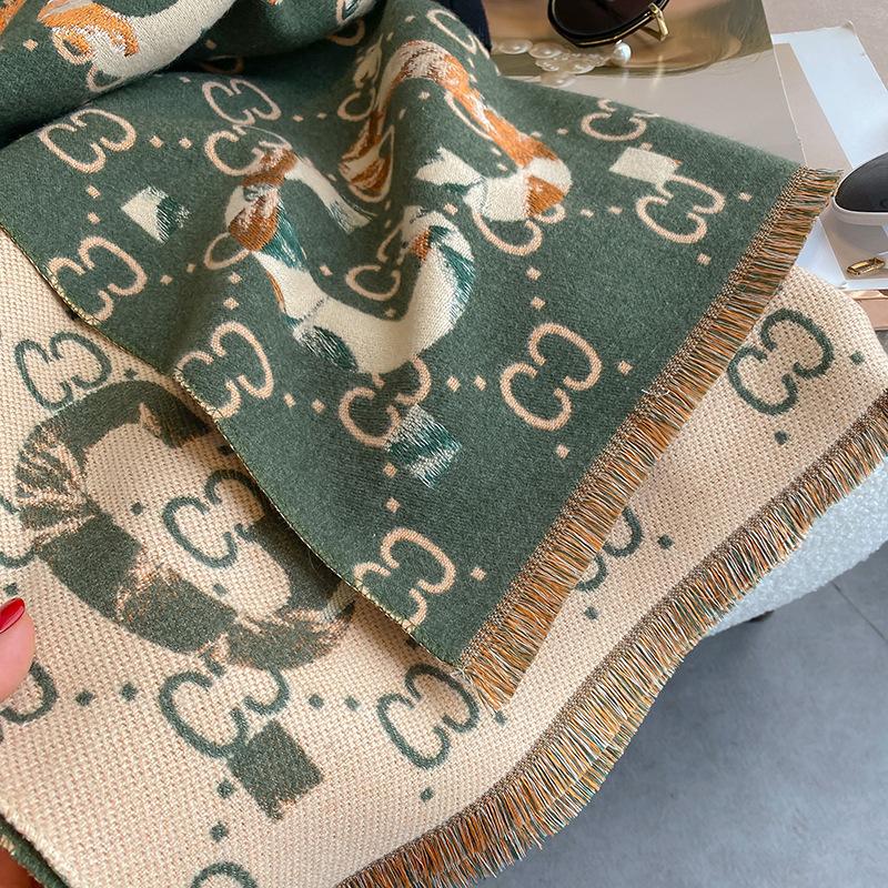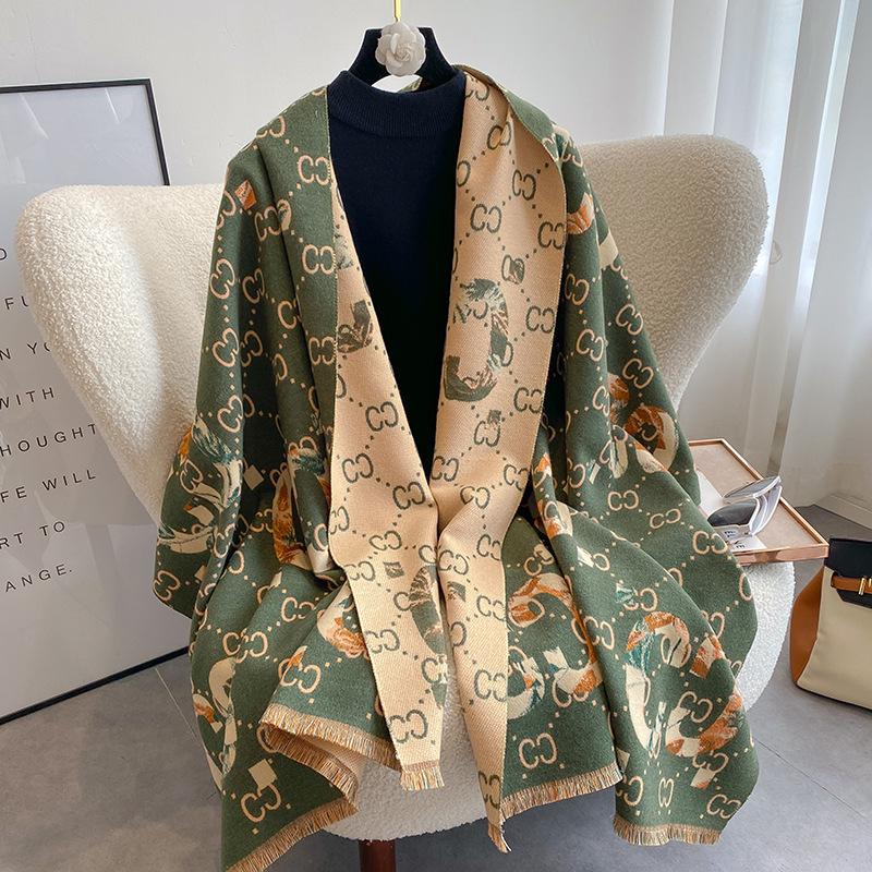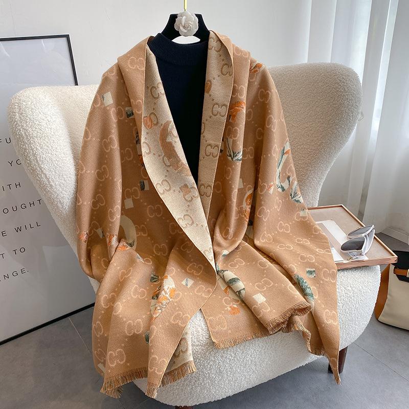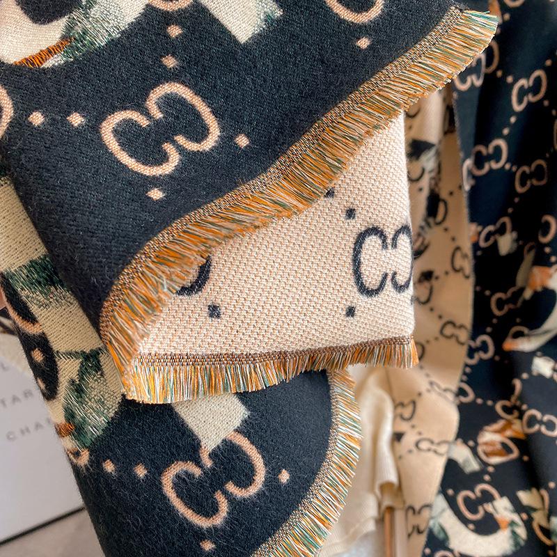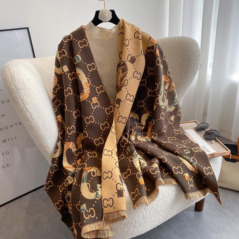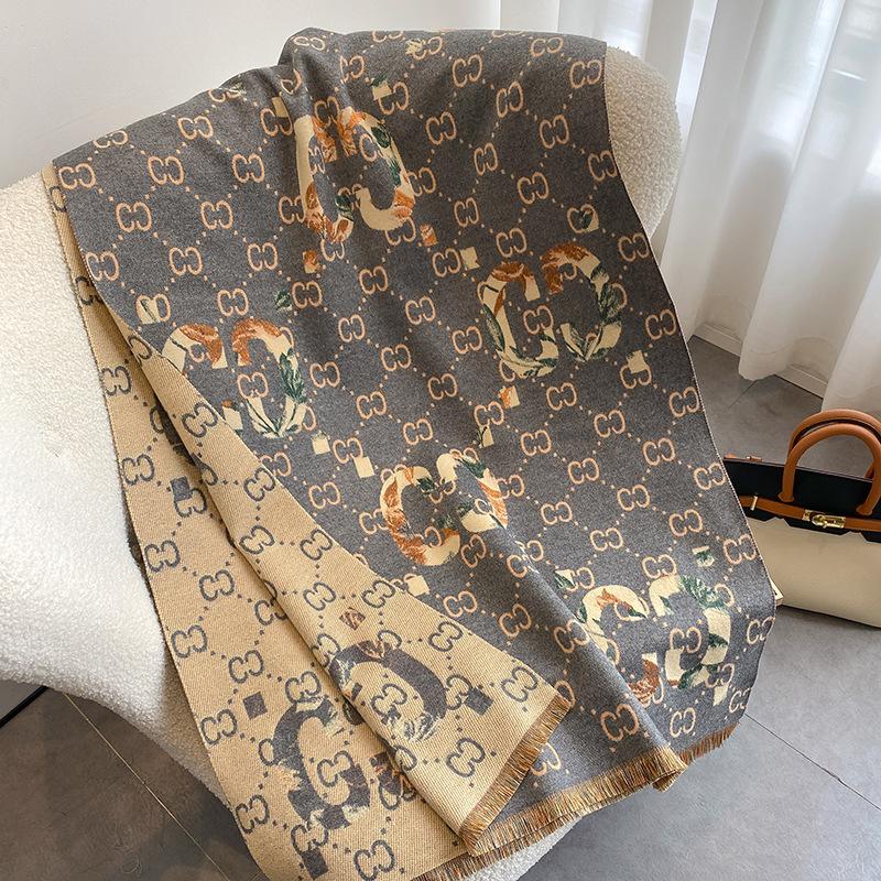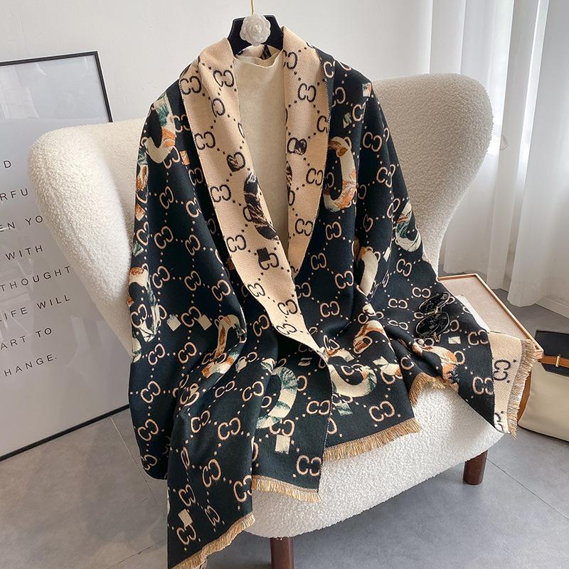 Bufanda de doble cara con letras nuevas de 2023 para mujer, estilo otoño e invierno, estilo cachemir, chal cálido de longitud media y aire acondicionado de estilo europeo y americano
