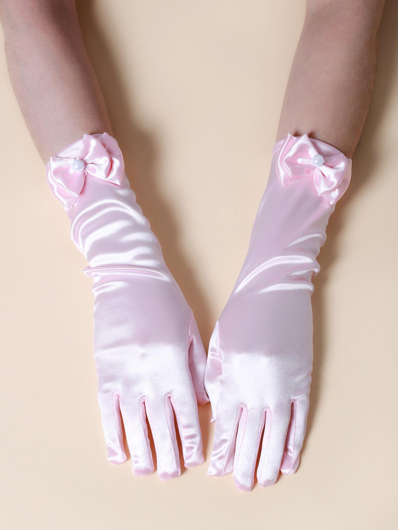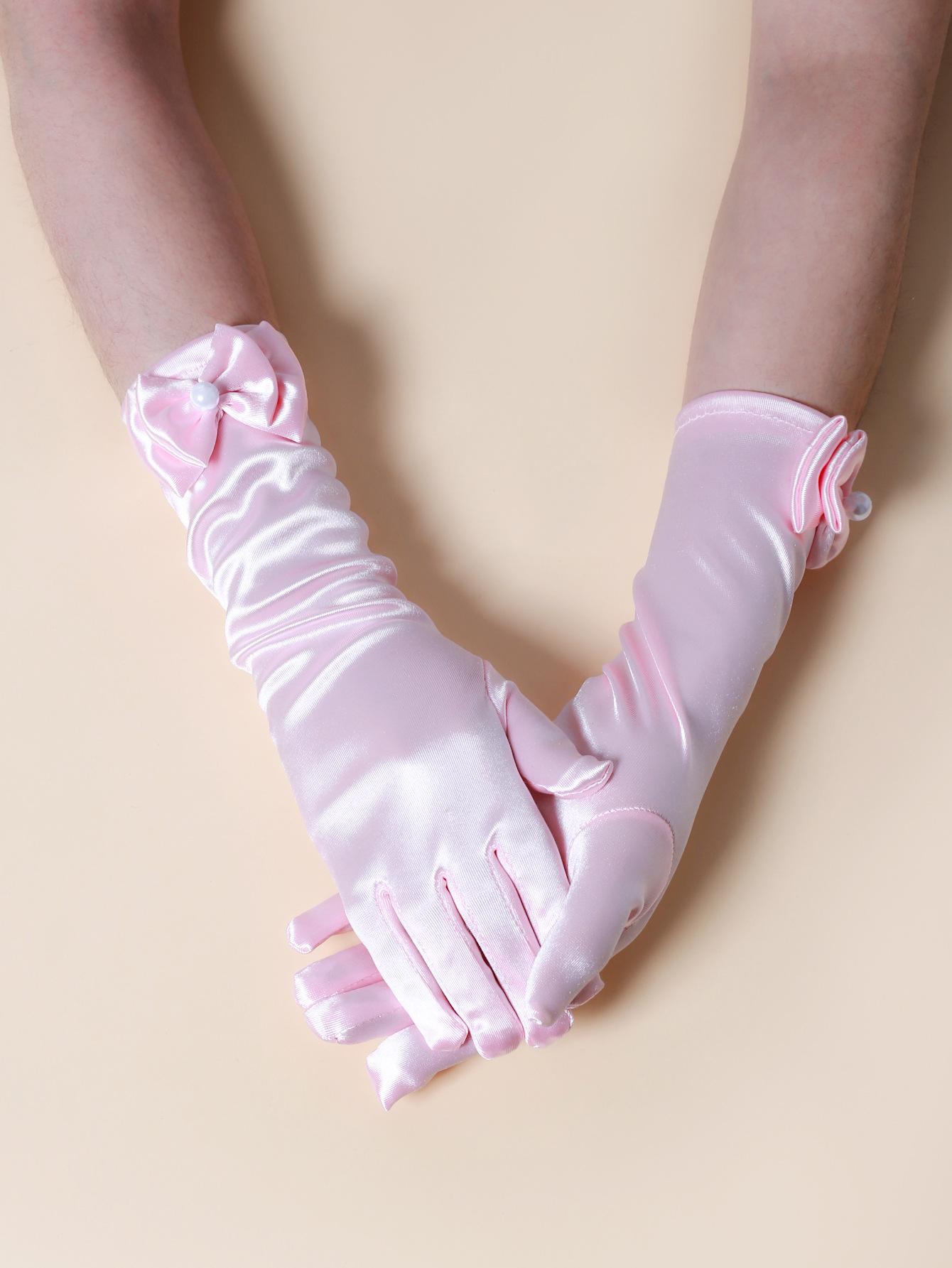 Guantes Shara elegantes de satén rosa con lazo vintage, para novia, vestido de novia, accesorios para estudio fotográfico