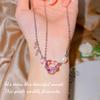 Collar de diamantes rosas de alta calidad, ligero y lujoso, con diseño de nicho, doble capa de costura, estilo dulce y moderno, con perlas cortas en forma de corazón rosa.