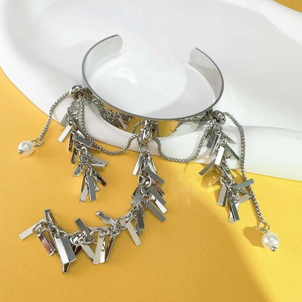 Pulsera abierta con borlas de lentejuelas, diseño de nicho, de alta gama, ligera, de lujo, a la moda, con personalidad súper genial para mujer.