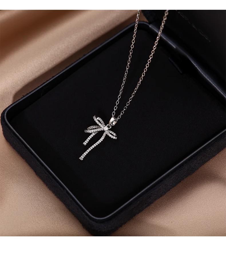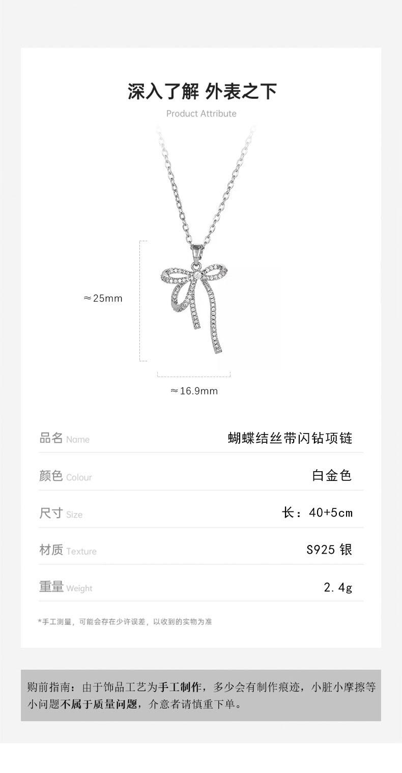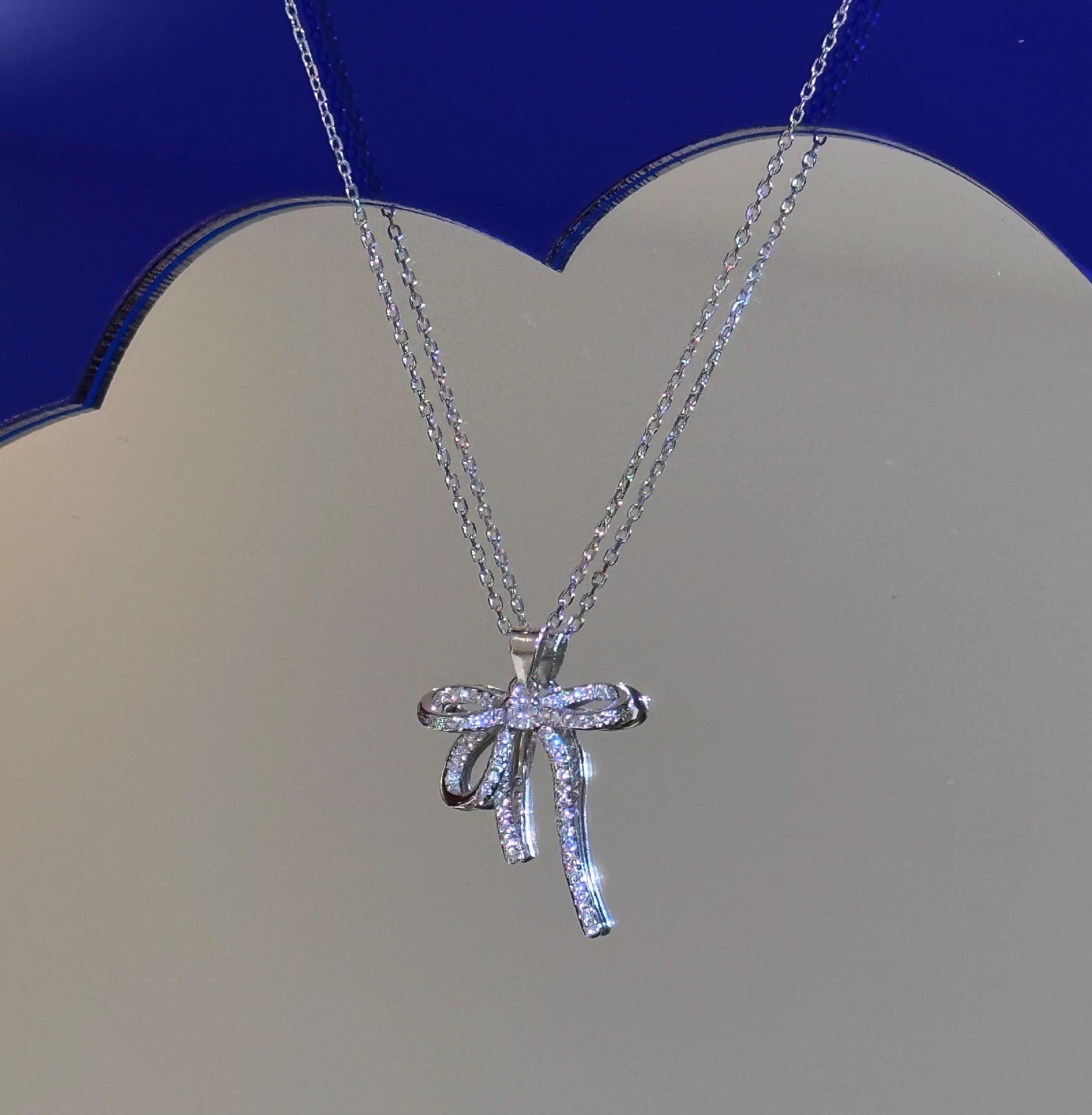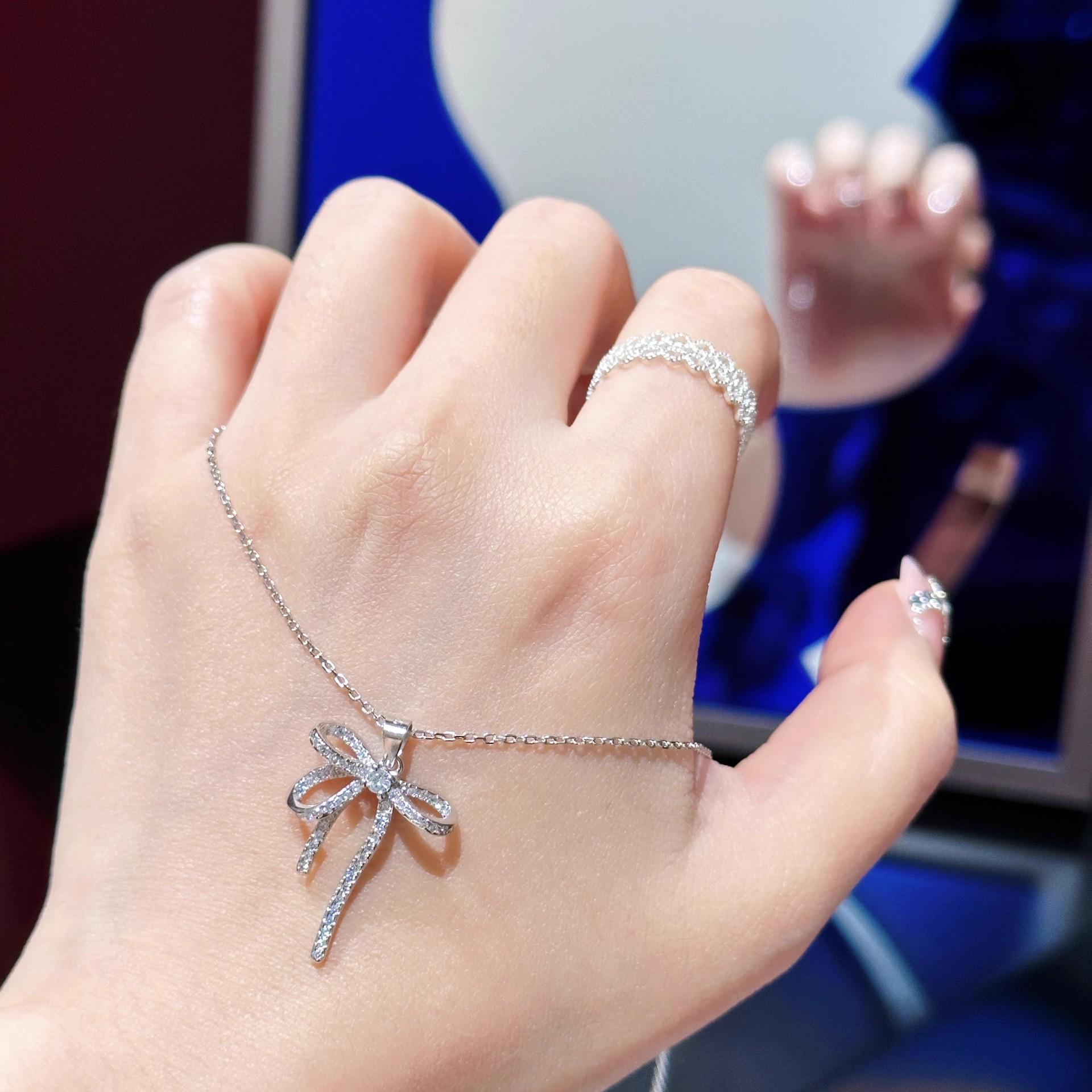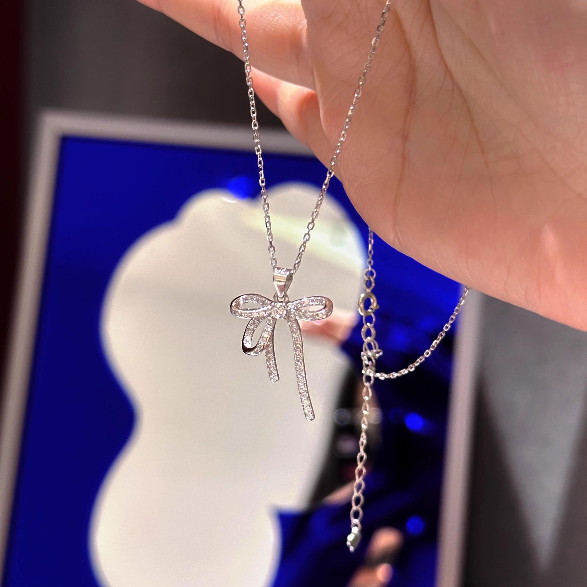 Collar de lazo de plata esterlina S925 con diamantes para mujer, diseño de nicho, cadena de clavícula de diamantes brillantes de lujo ligero de alta gama.