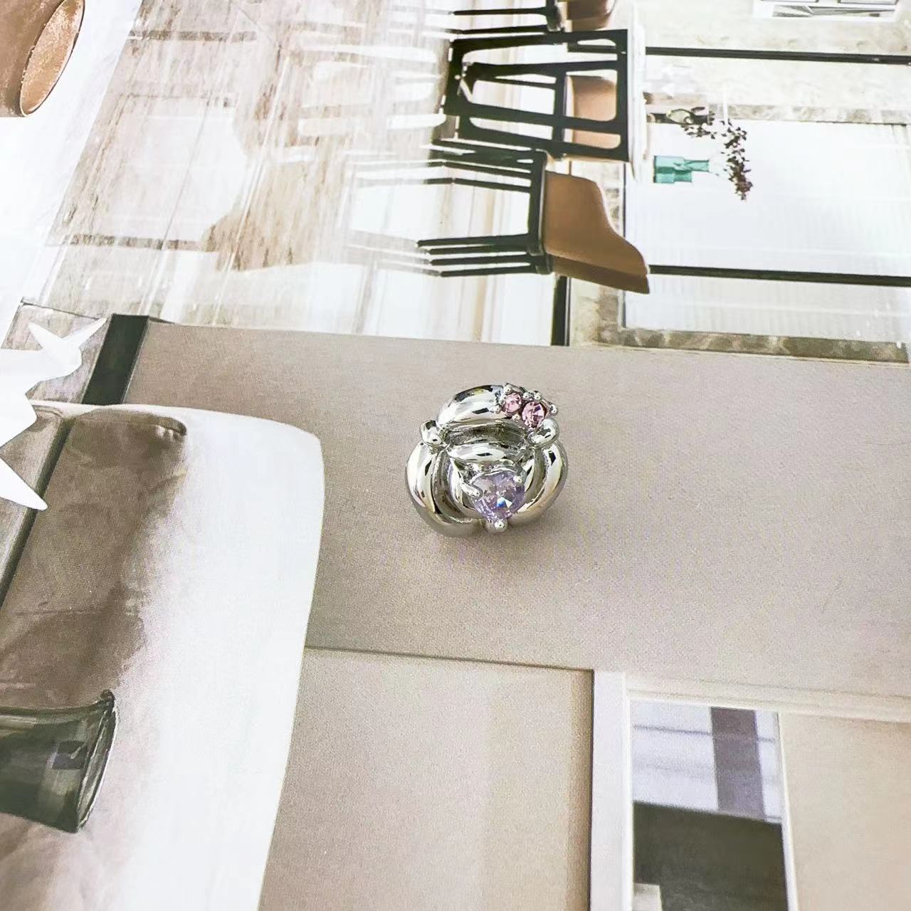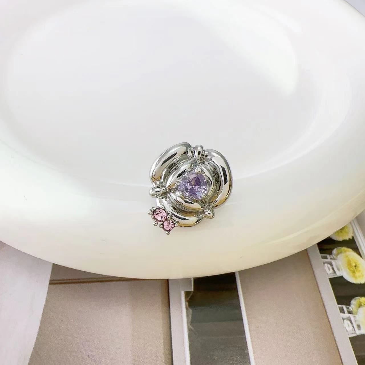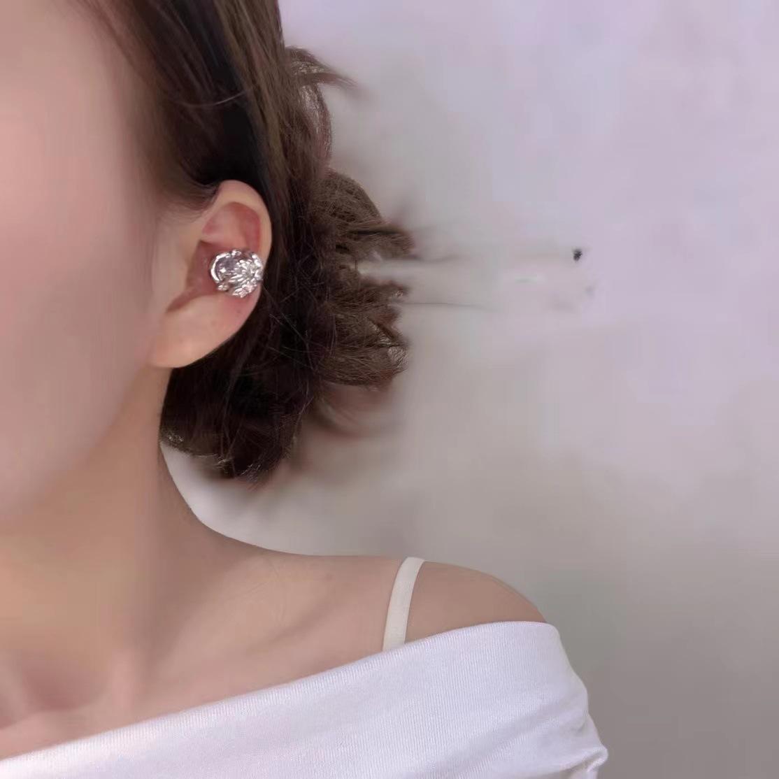 Pendientes de clip para oreja con forma de rosa y flor de circonio con incrustaciones de colores, estilo femenino de nicho, de temperamento simple, ligeros y lujosos, a la moda, combinables con todo.