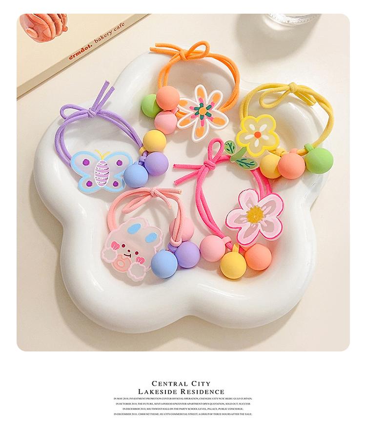 Cuerda para el pelo con dibujos animados para niñas, bonita banda de goma elástica con diseño de flores de dibujos animados, accesorios para el cabello de verano