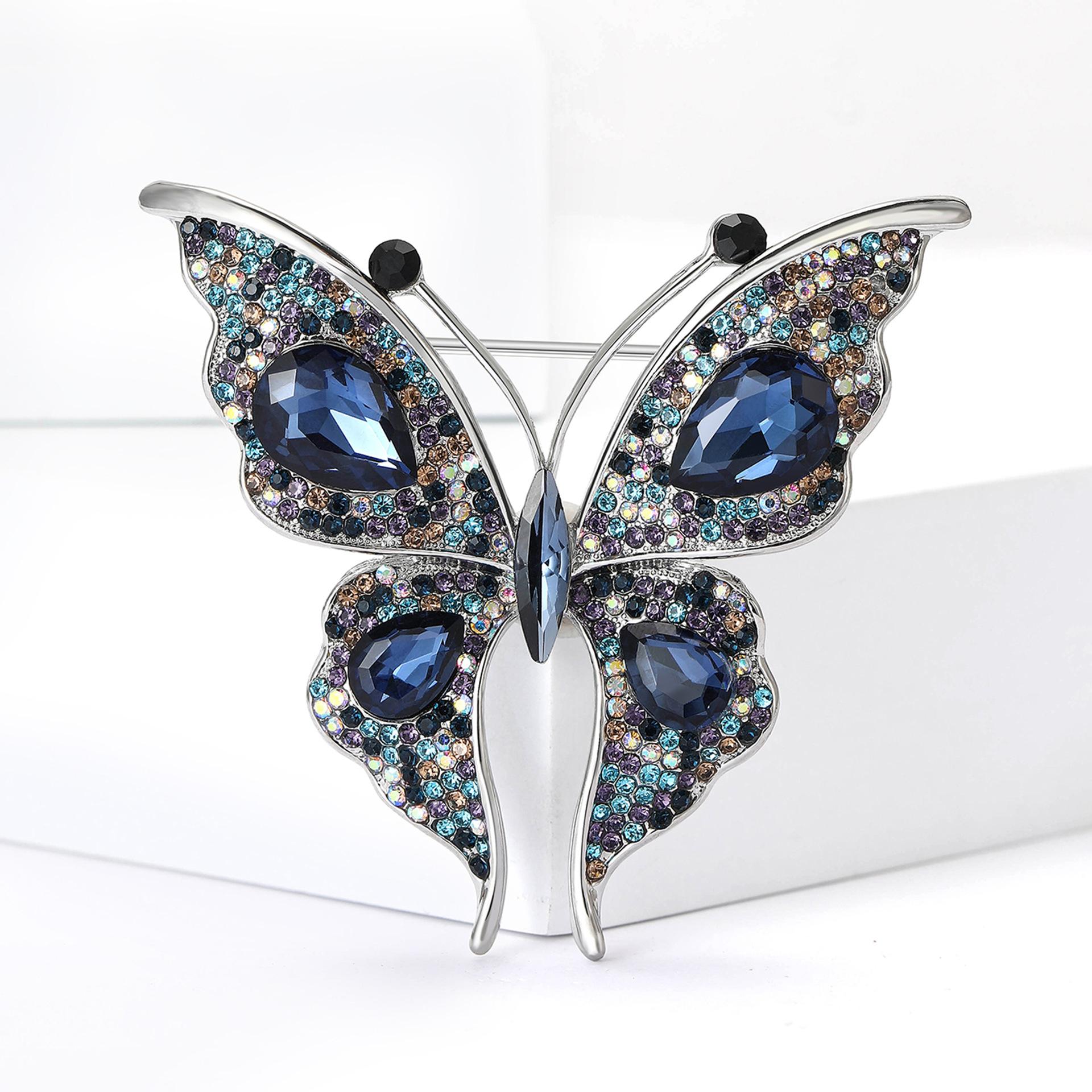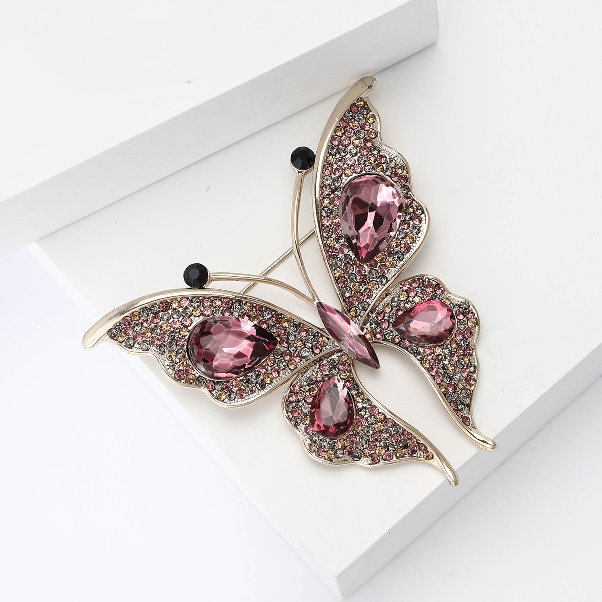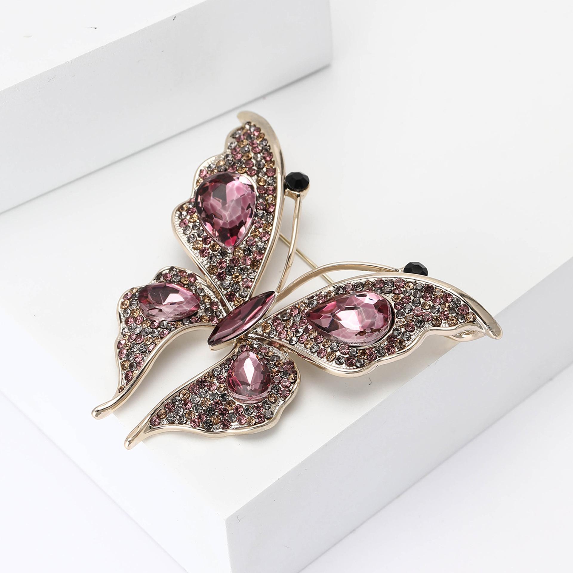 Nuevo broche de mariposa con diamantes de imitación de aleación para la industria pesada transfronteriza europea y americana, exquisito broche de joyería con ramillete para ropa de mujer a la moda