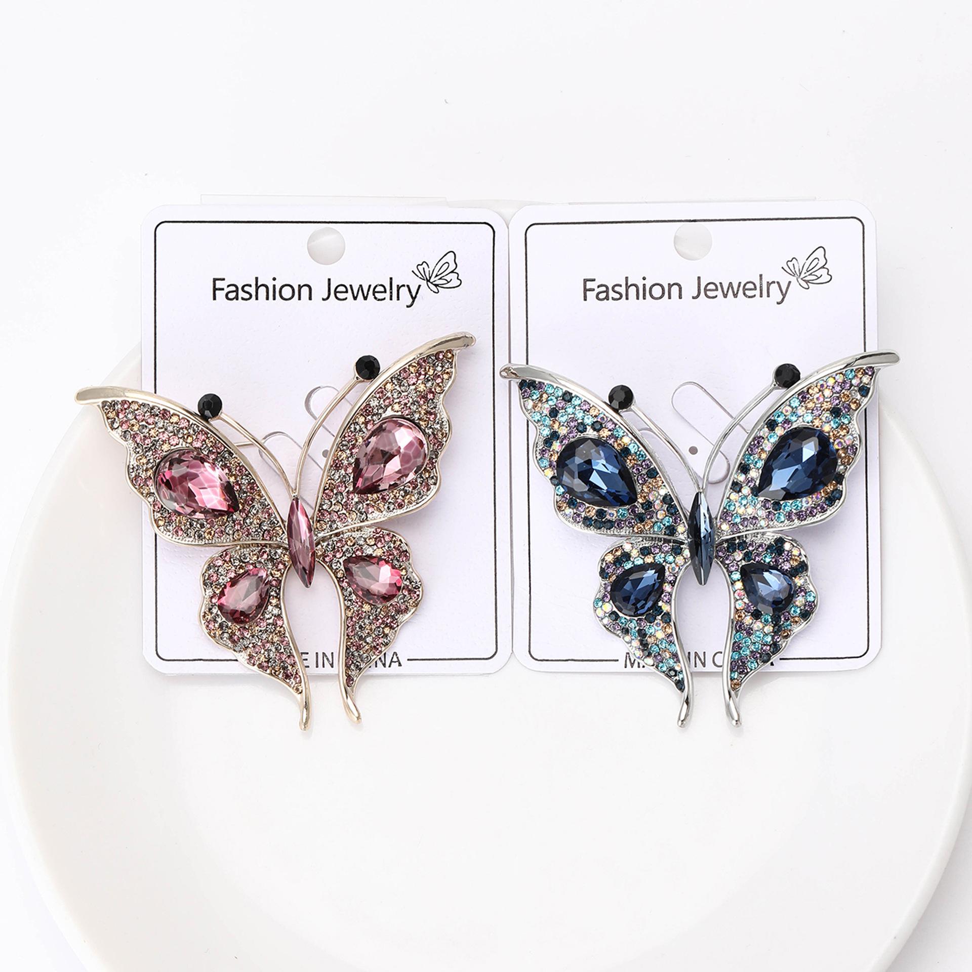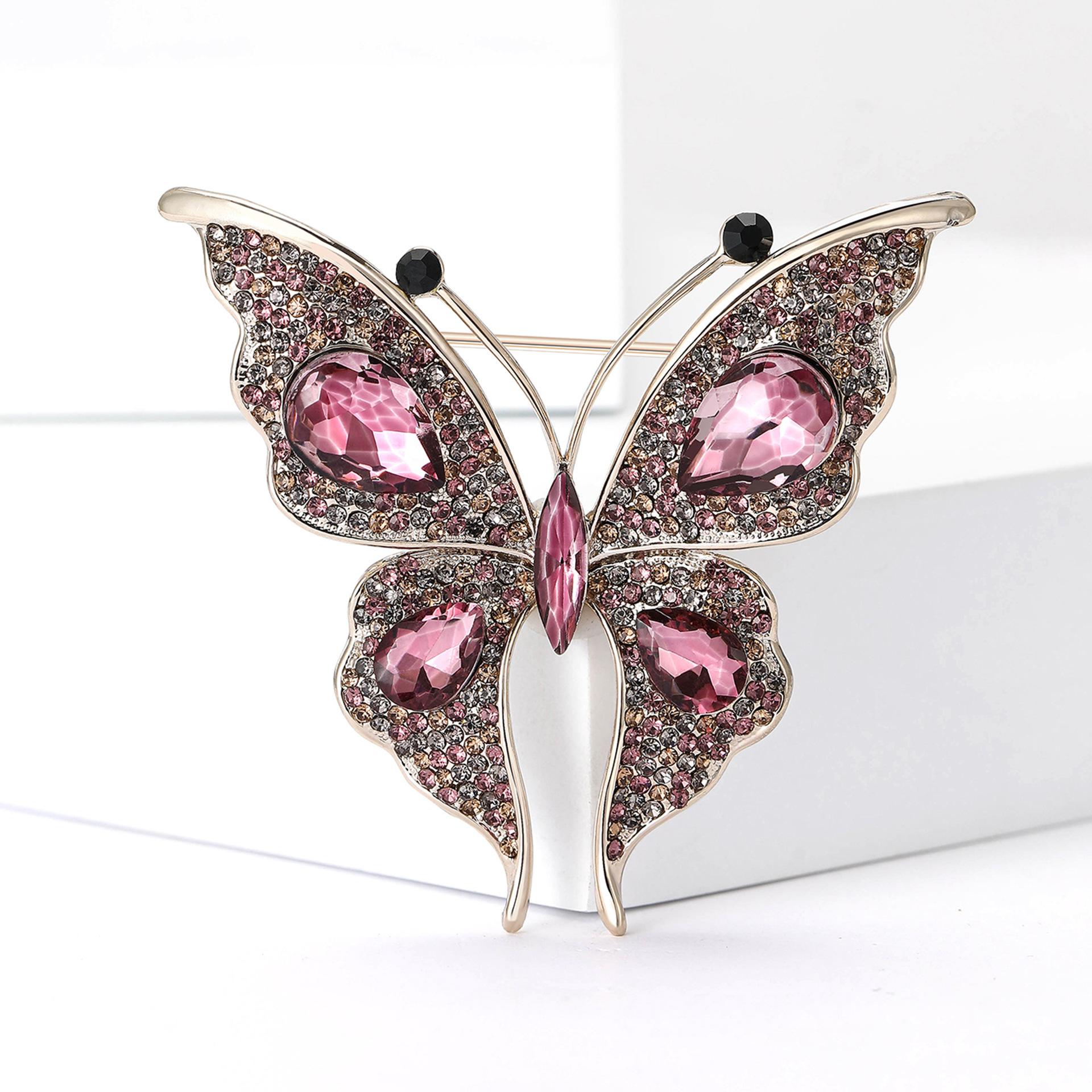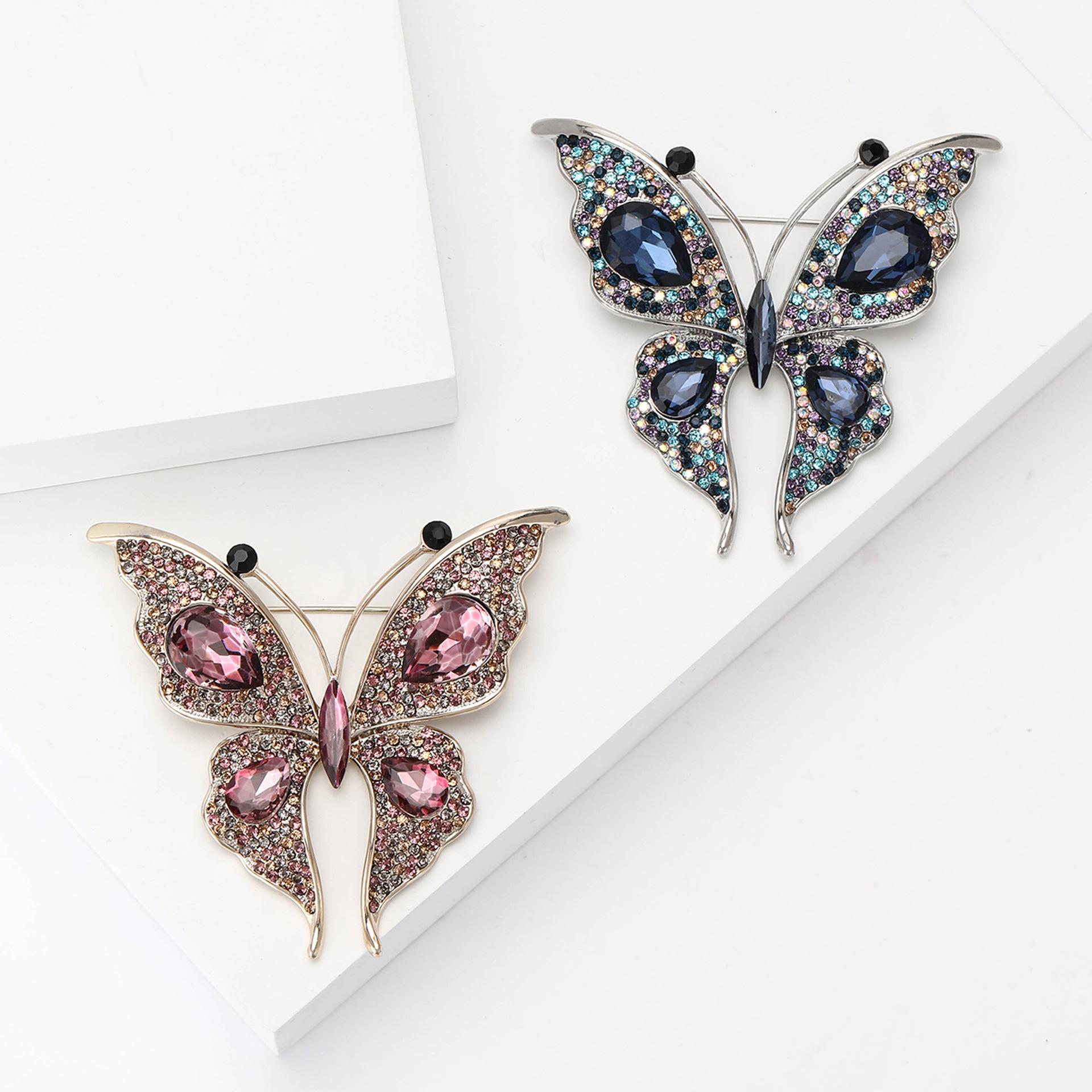 Nuevo broche de mariposa con diamantes de imitación de aleación para la industria pesada transfronteriza europea y americana, exquisito broche de joyería con ramillete para ropa de mujer a la moda