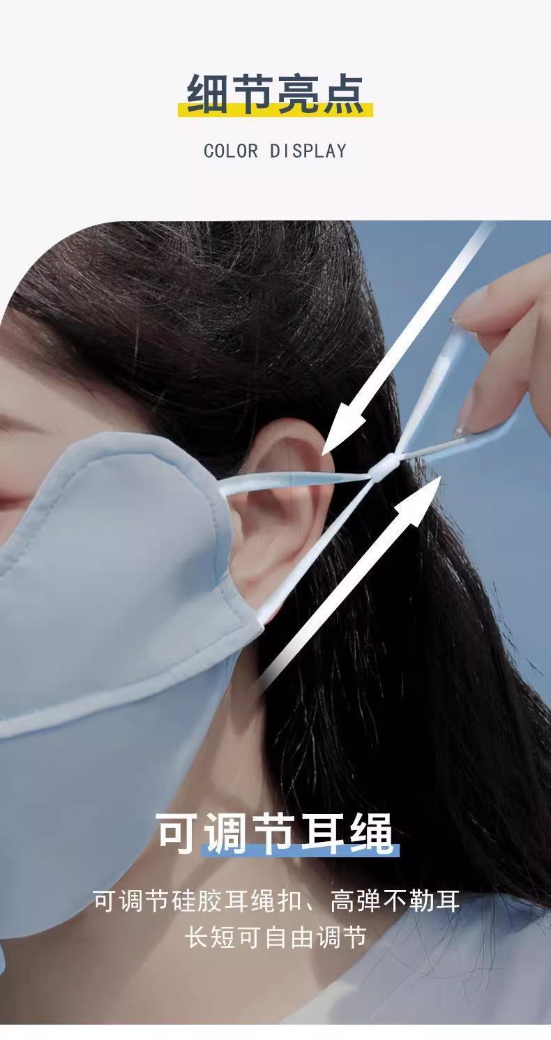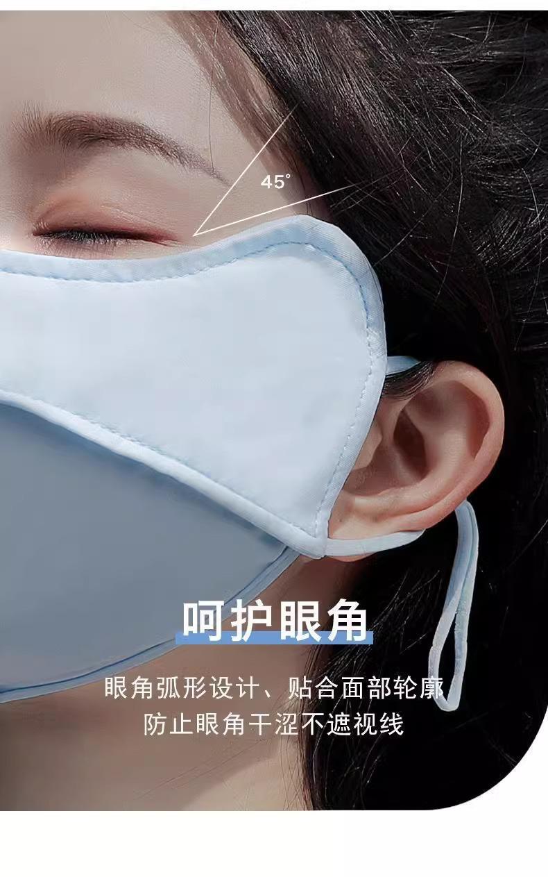 Mascarilla de protección solar anti-UV para mujer, de verano, fina, de seda helada, transpirable, para conducir, mascarilla facial completa, protección para las esquinas de los ojos.