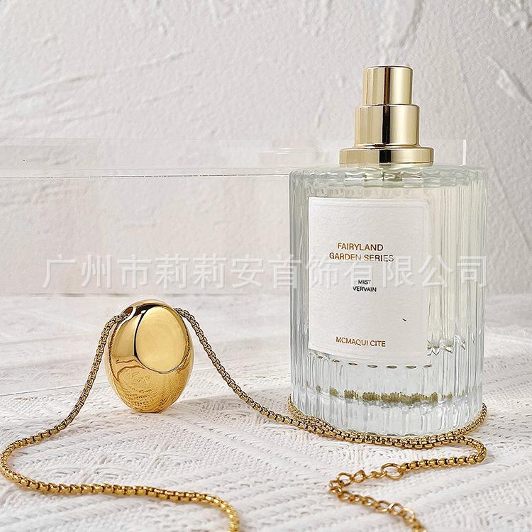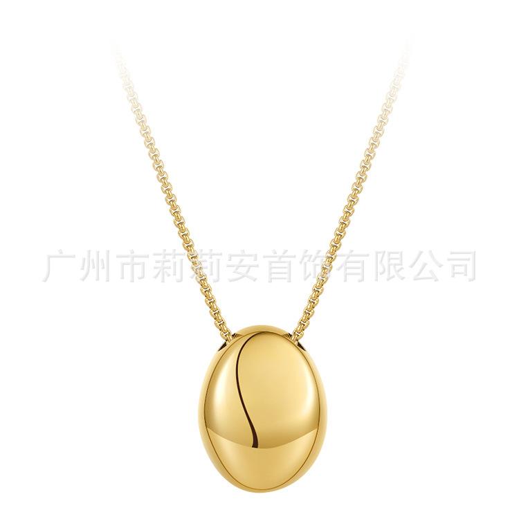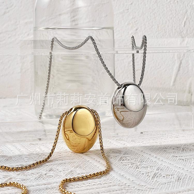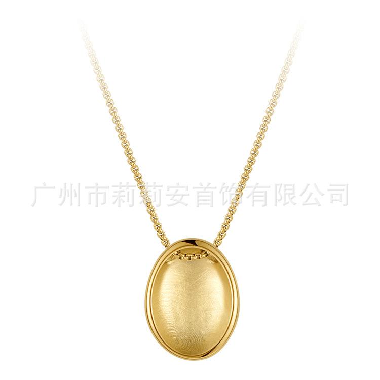 Collar de cadena de cuello hueco con espalda ovalada lisa, diseño europeo y americano, de acero de titanio chapado en oro de 18 quilates, estilo INS Wind P213266