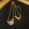 Compra Collar francés de lujo con incrustaciones de cobre, ovalado, irregular, con diamantes de imitación y chapado en oro de 18 quilates, diseño brillante. al por mayor en Joom.pro