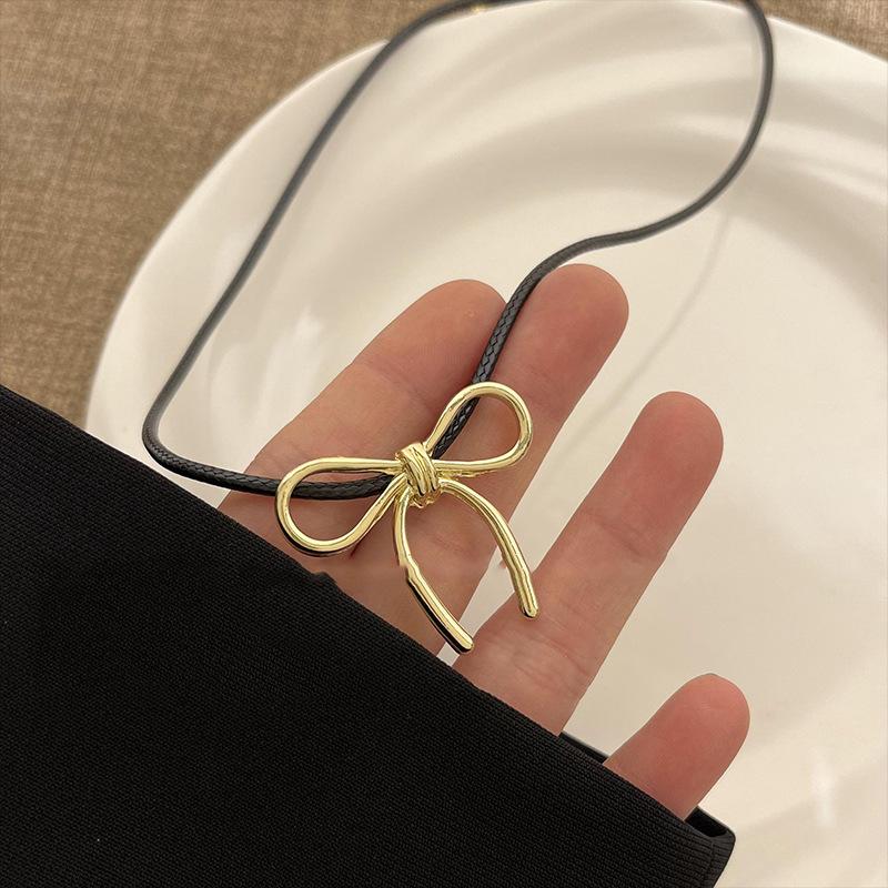 Collar de cuero con lazo para mujer, estilo vintage, elegante, con cadena de especias, adornos distintivos de alta calidad.