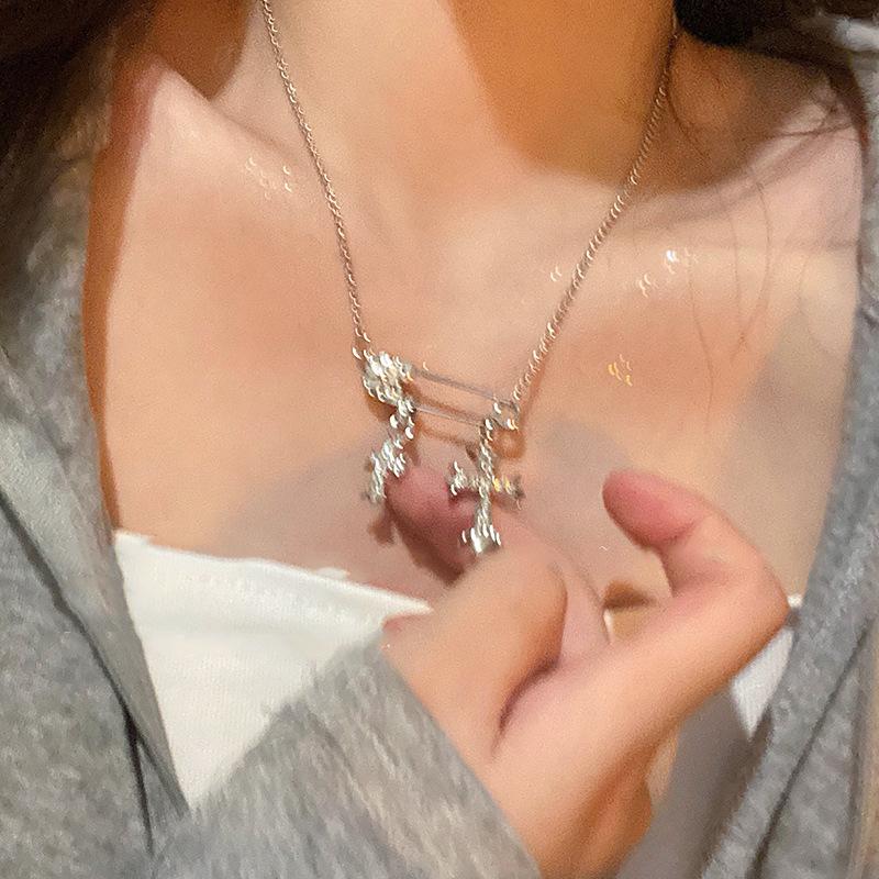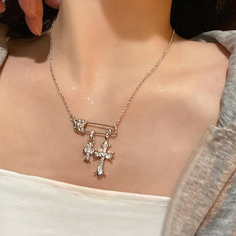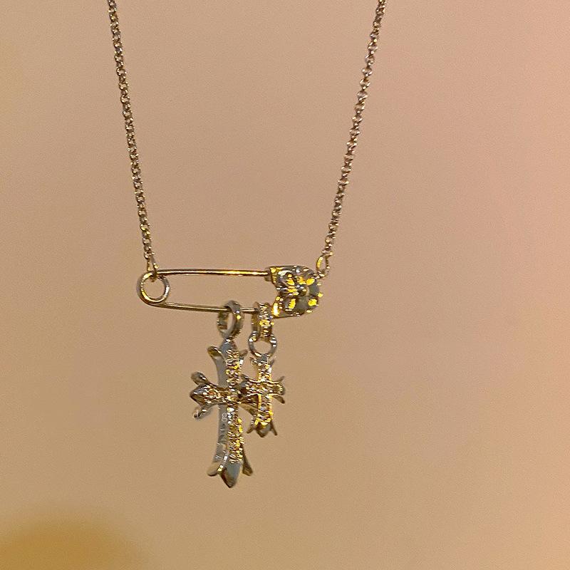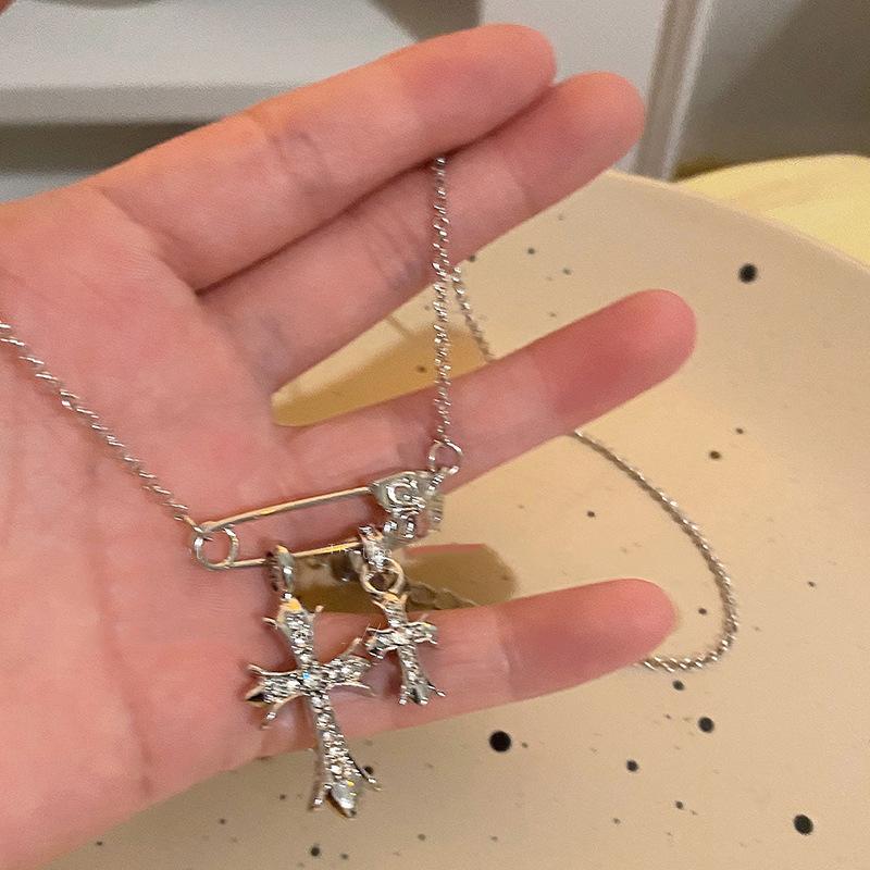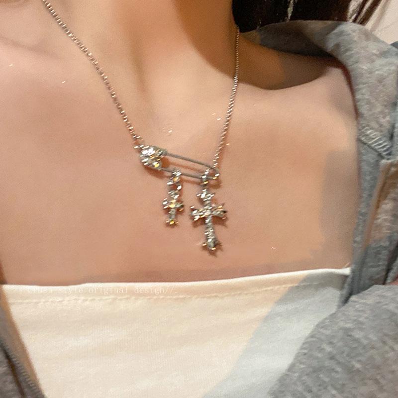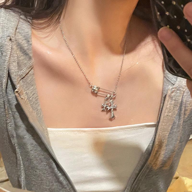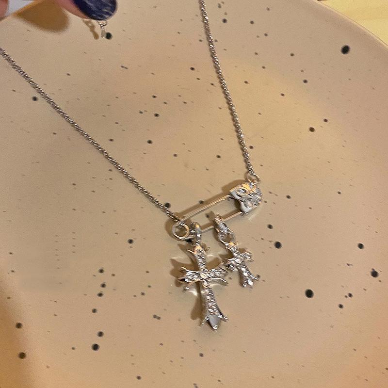 Collar de Pin de Circonita Cruz para Mujer 2024 Nuevo Explosivo Dulce Accesorios Cool Lujo Ligero Nicho Cadena Clavicular de Alta Gama
