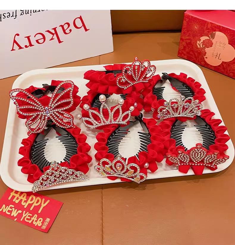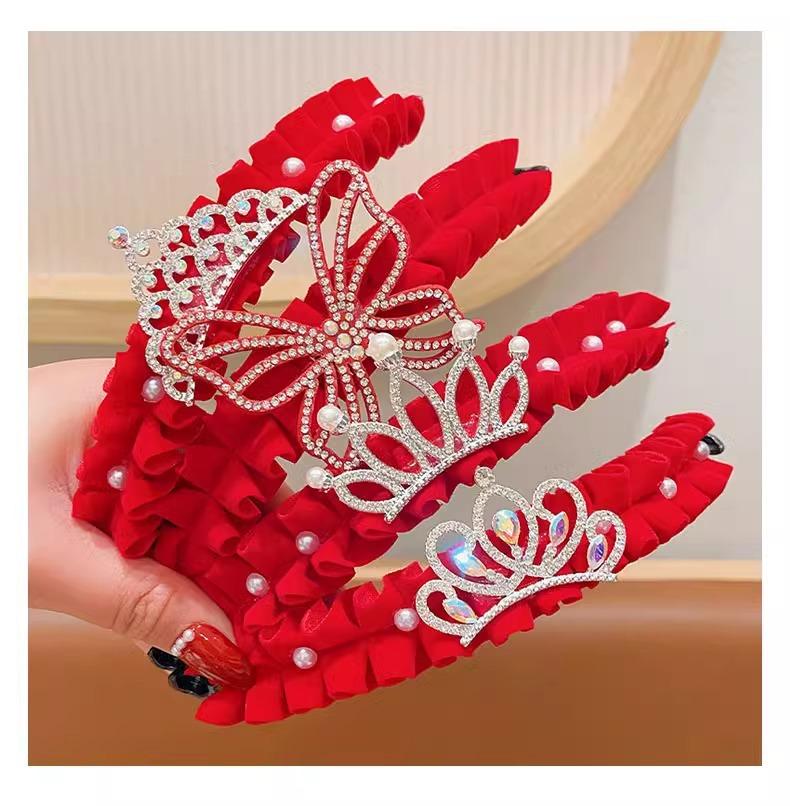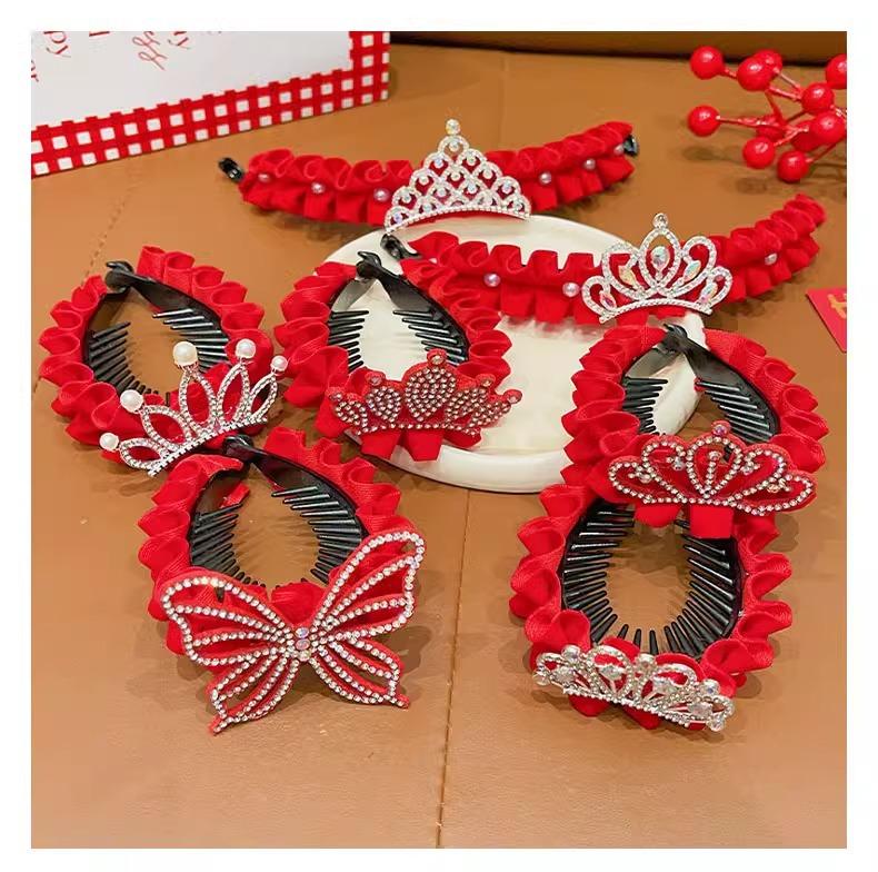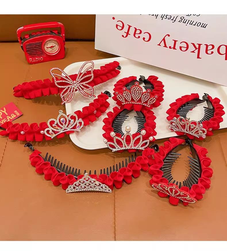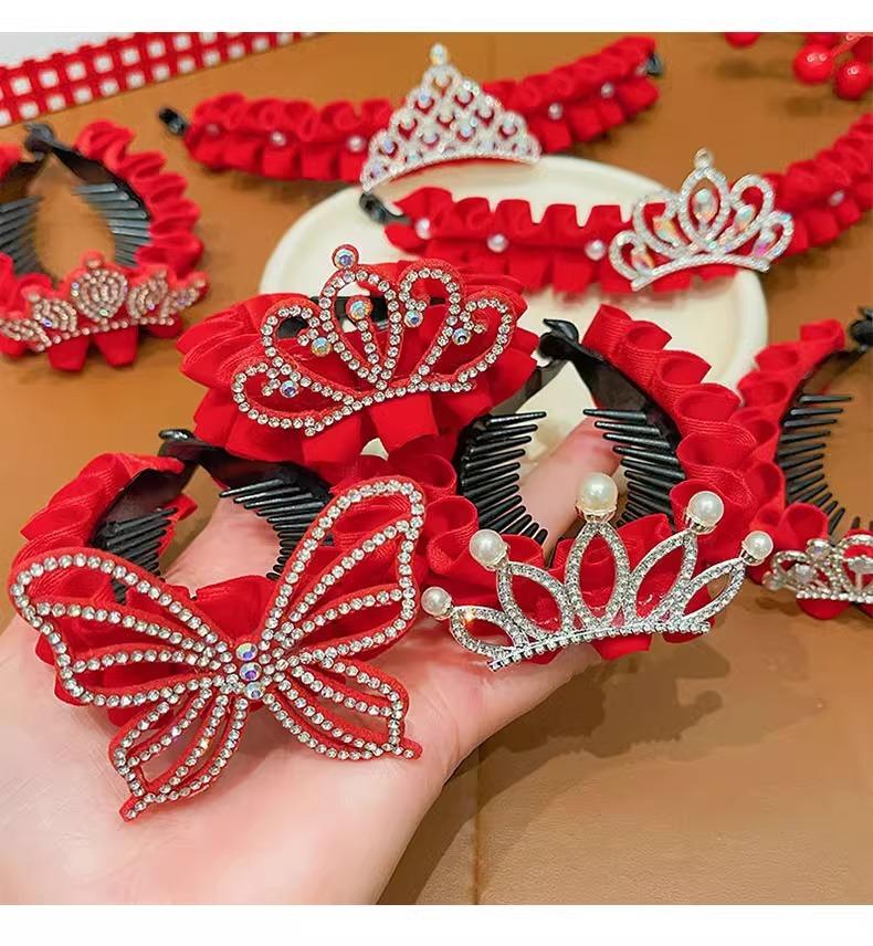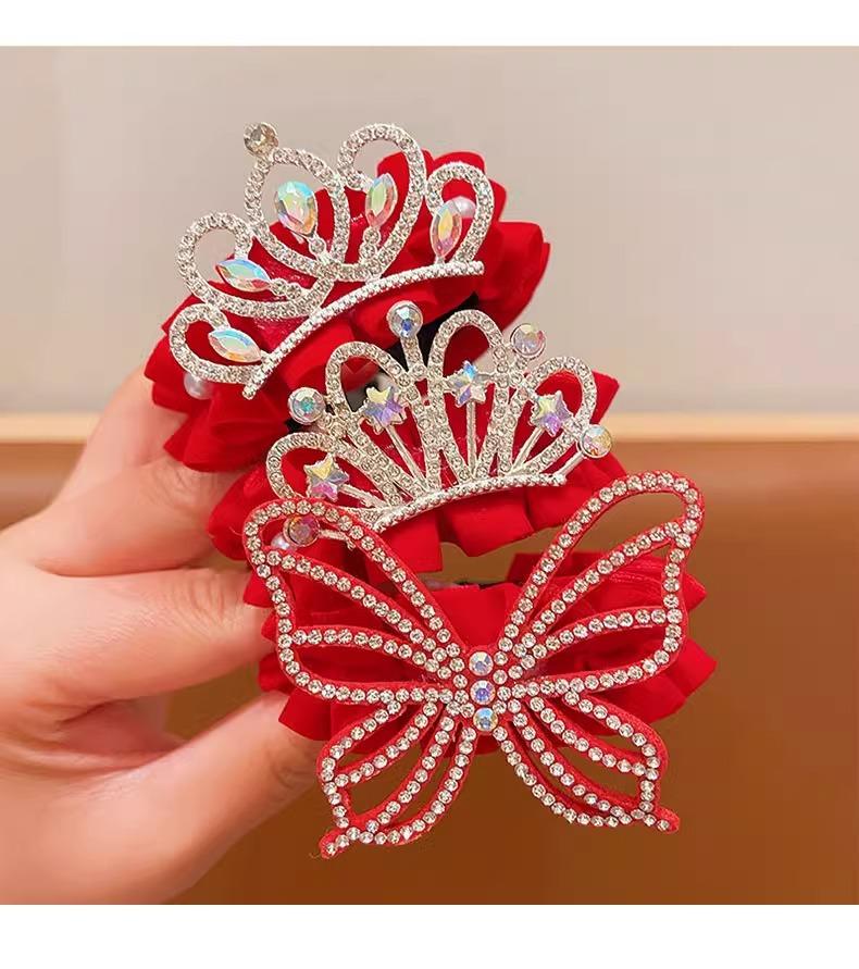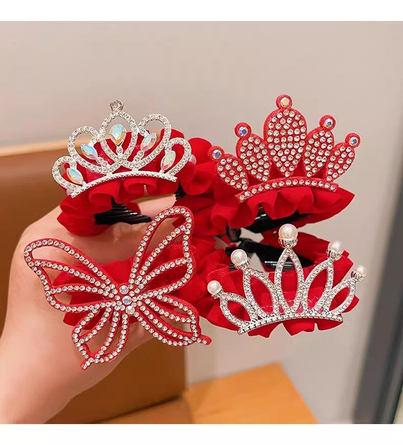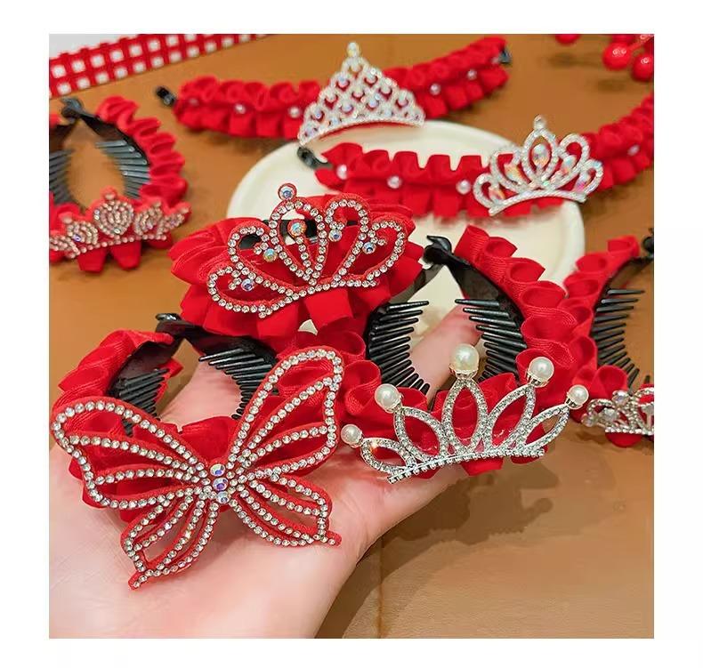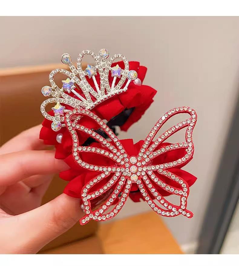 Tocado de corona roja para niños, artefacto para cabeza de bola, bebé, súper hada, princesa, cola de caballo, hebilla, mariposa, tarjeta para el cabello, accesorios para el cabello