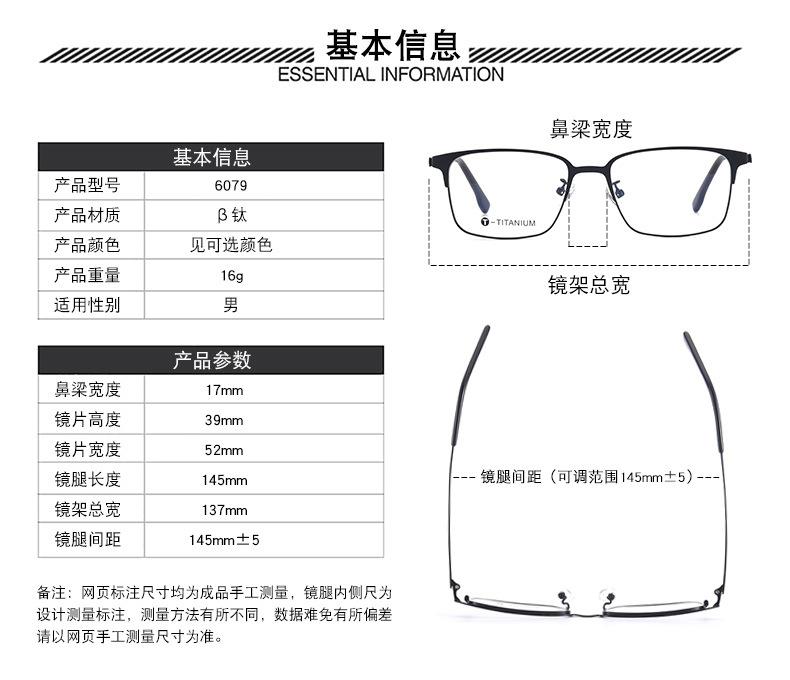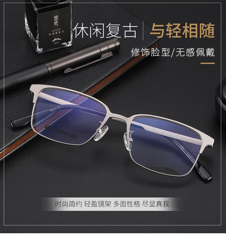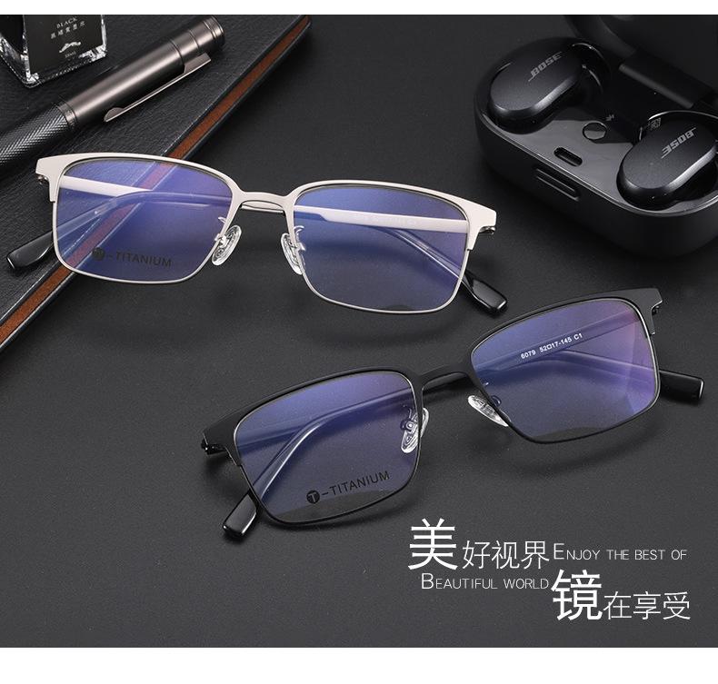 Nuevo marco de titanio para negocios, ultraligero para ocio de hombres, se puede equipar con marco completo para miopía, marco de gafas cuadrado, marco de cejas, venta al por mayor 6079