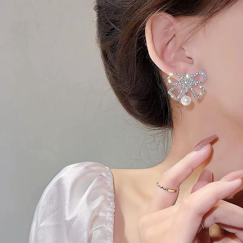Compra Pendientes elegantes de plata s925 con forma de mariposa y perla, diseño de pendientes de lujo ligeros y modernos de primavera 2023. al por mayor en Joom.pro