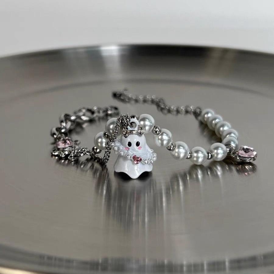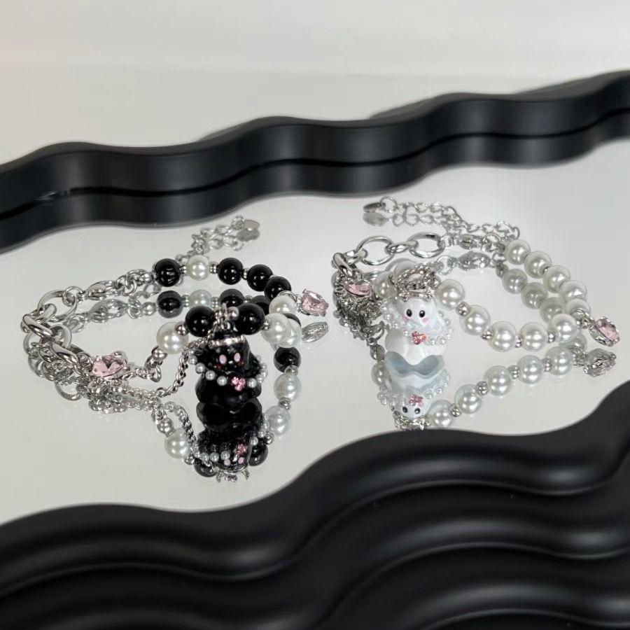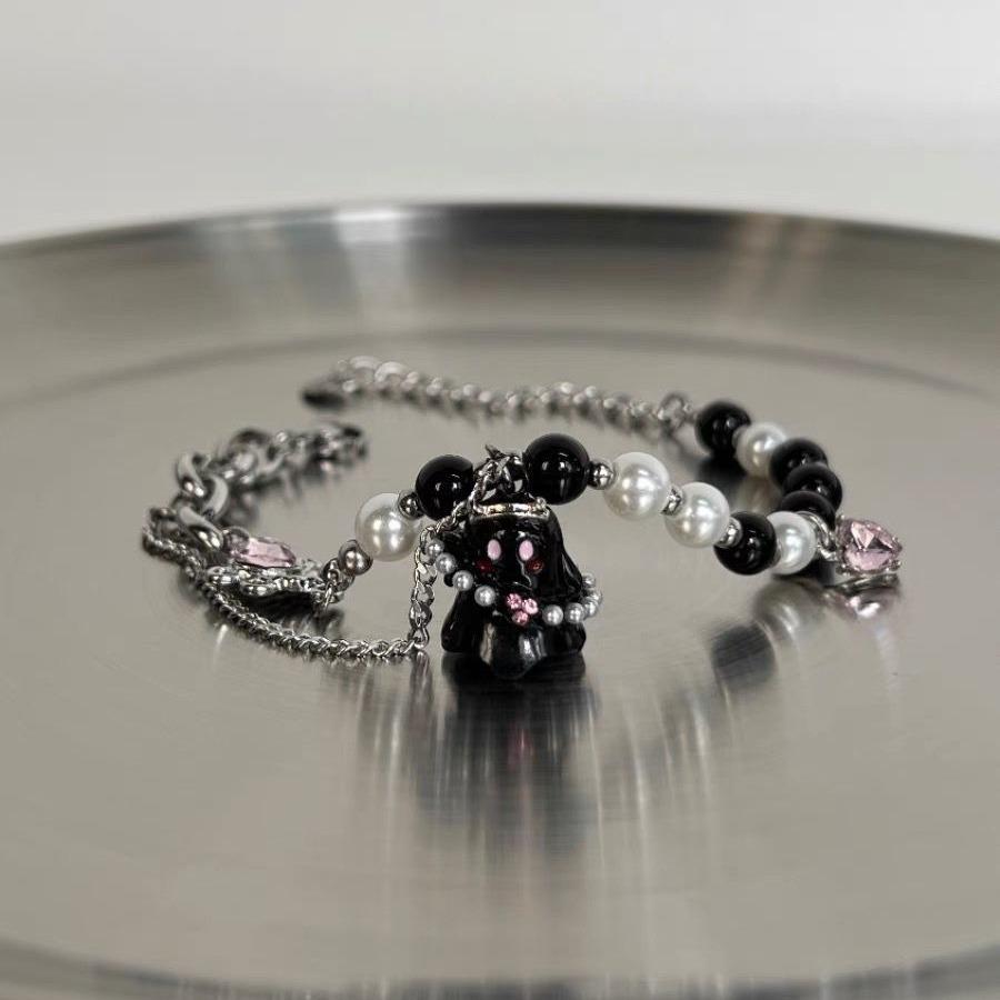 Pulsera de Cuentas de Fantasma Blanco y Negro para Mujer Lujo Ligero Nicho Estilo Frío Dulce Cool Avanzado Joyería de Moda para Novia de Niña
