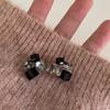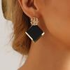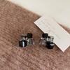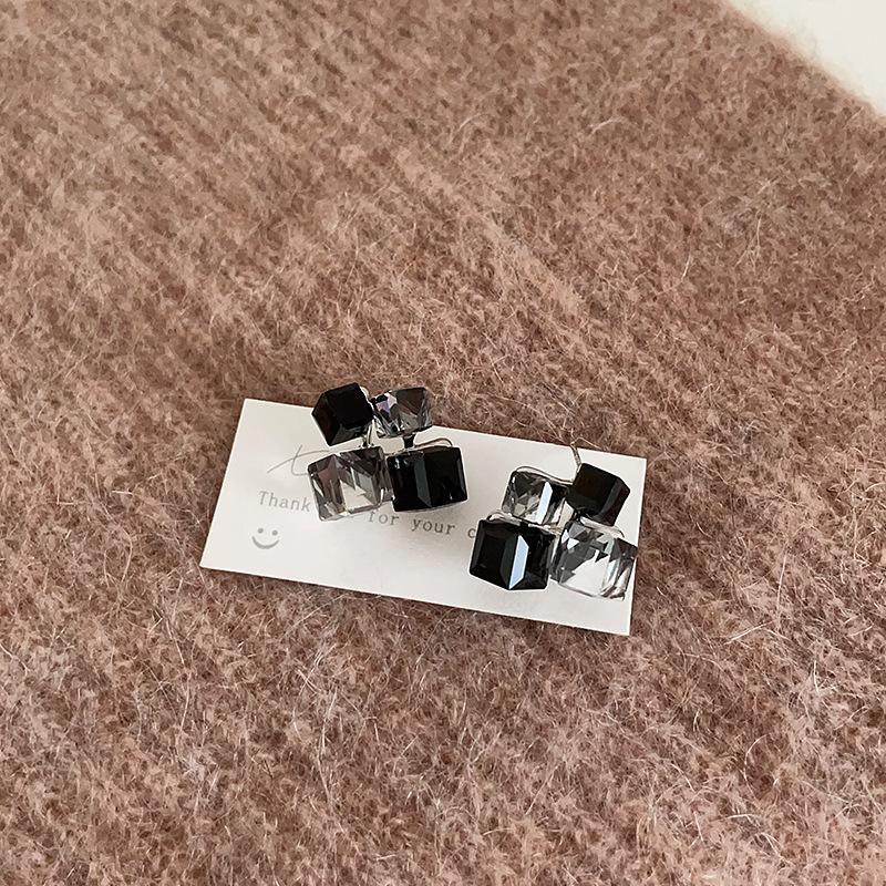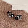 Pendientes de botón de metal cuadrado de cristal negro con diseño de nicho femenino, personalidad exagerada, temperamento versátil, pendientes de moda.