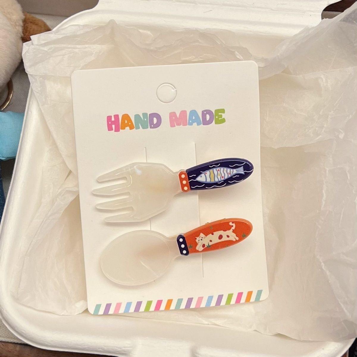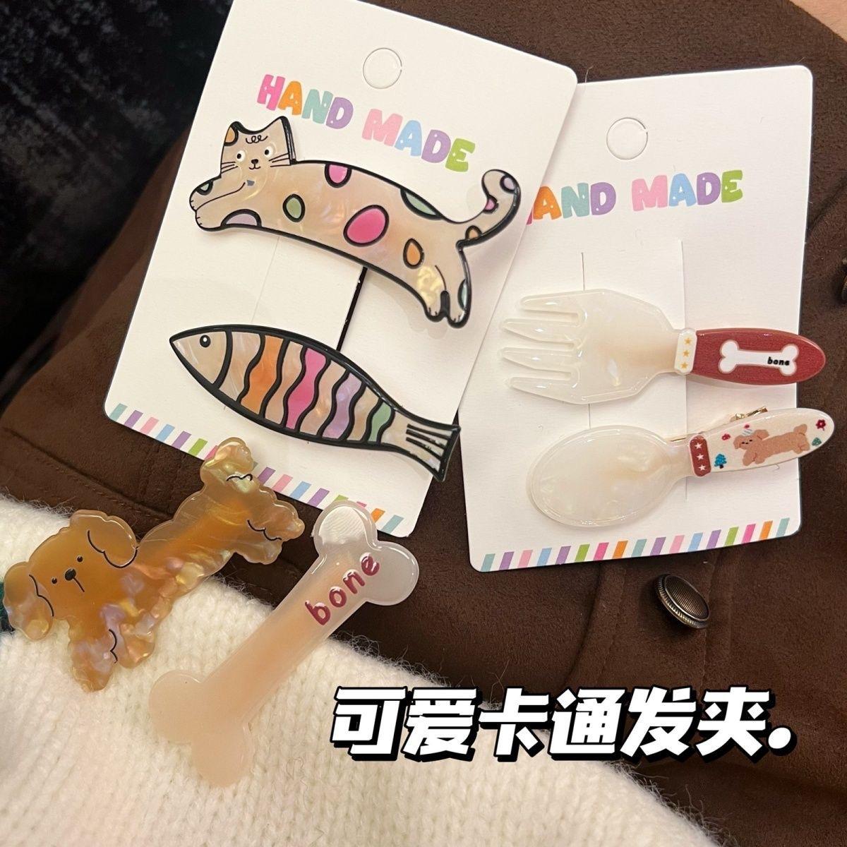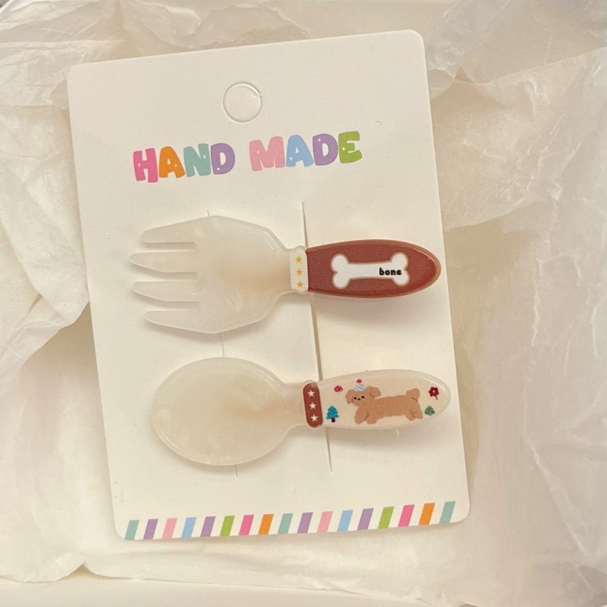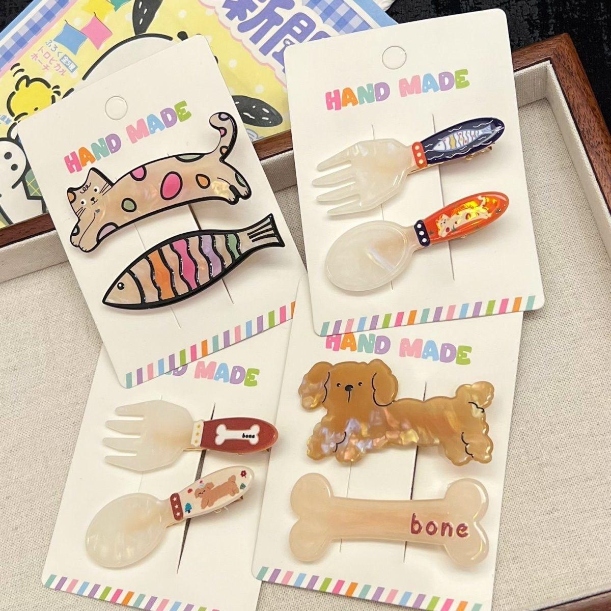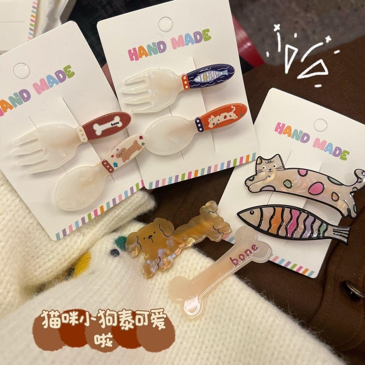 Lindo gatito cachorro horquilla traje dulce niña corazón tenedor cuchara flequillo clip todo fósforo dibujos animados tocado mujer