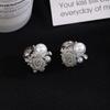 Pendientes de Flor de Perla de Imitación Metálica Dulce Aguja Plateada Moda Europea y Americana Pendientes Simples Elegantes de Alta Gama para Mujer