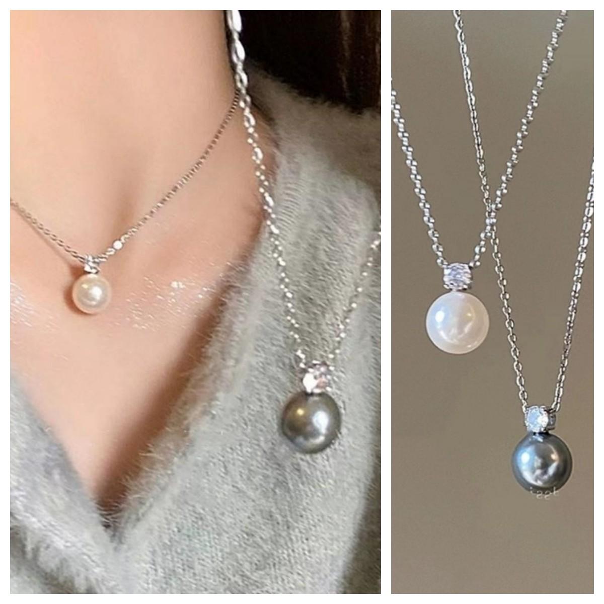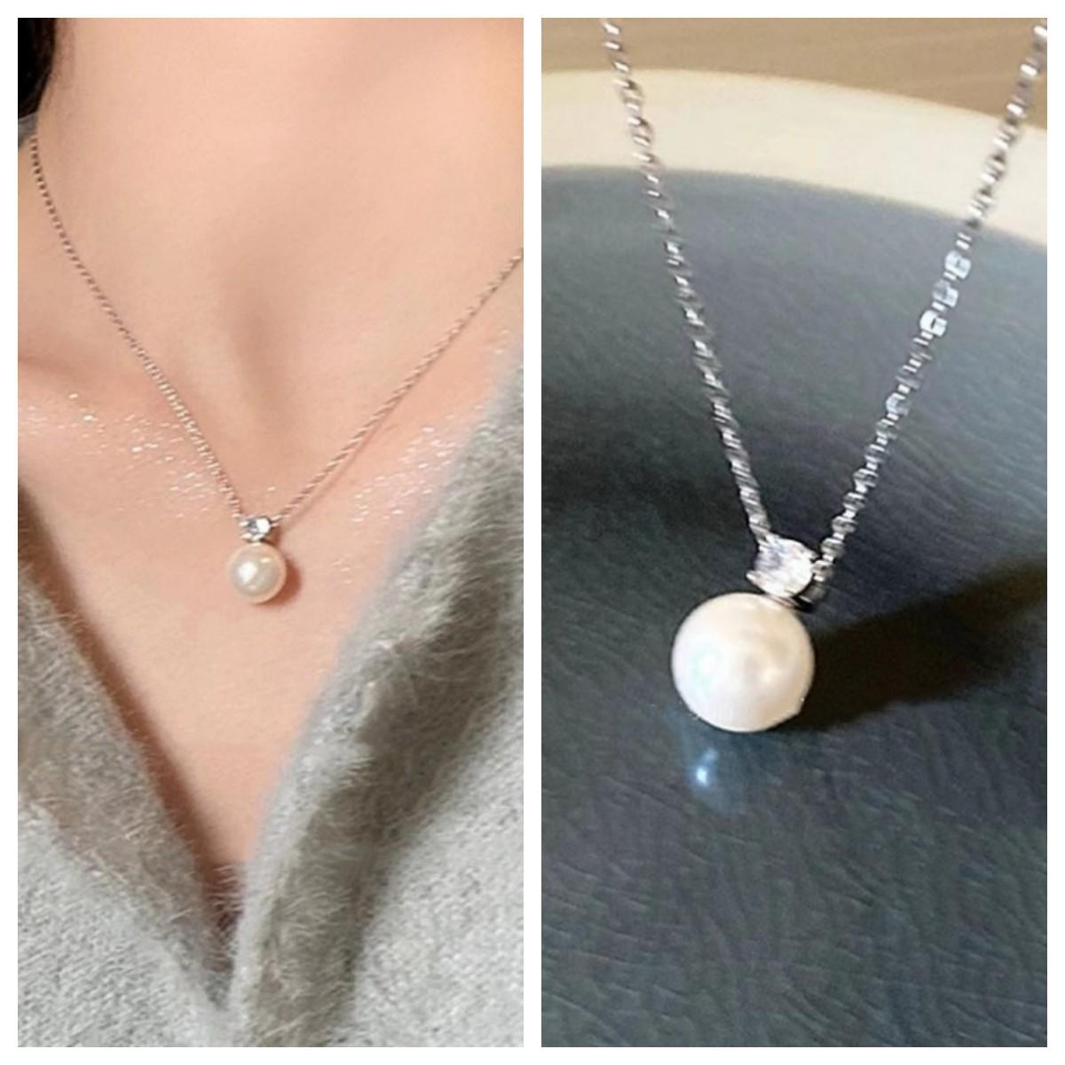 Collar con cadena de clavícula de perlas de imitación de alta calidad, elegante y moderno, de lujo, con diseño de nicho ligero y moderno. Nuevo.