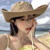 Sombrero de verano de secado rápido con protector solar para mujer, estilo coreano, retro, para acampar al aire libre, senderismo, sombrero de vaquero occidental de ala grande, moderno