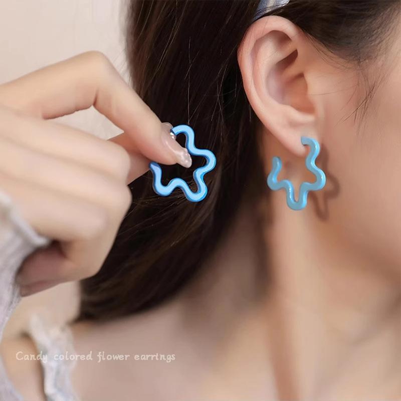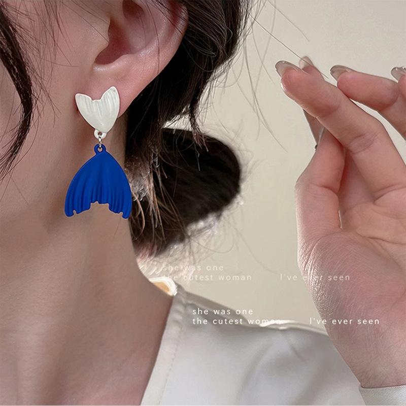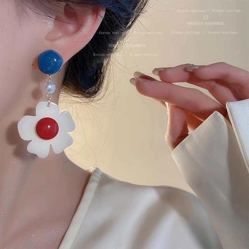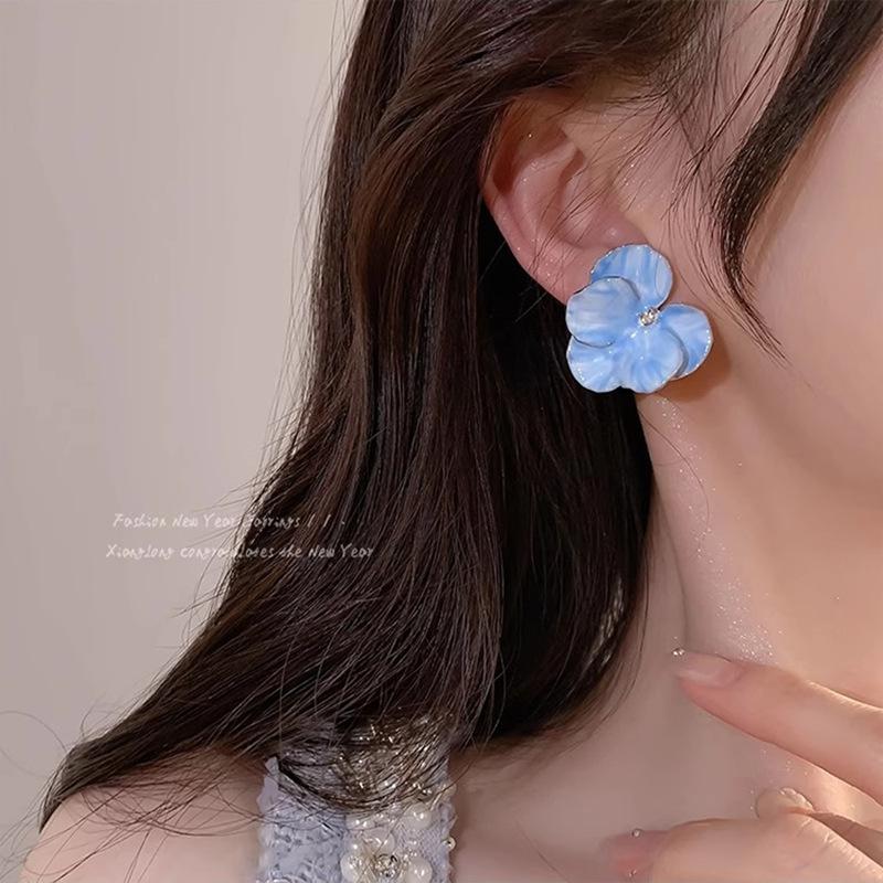Pendientes de flores azules para mujer, estilo fresco de vacaciones de verano 2024, nuevos pendientes de alta gama de nicho de moda.