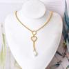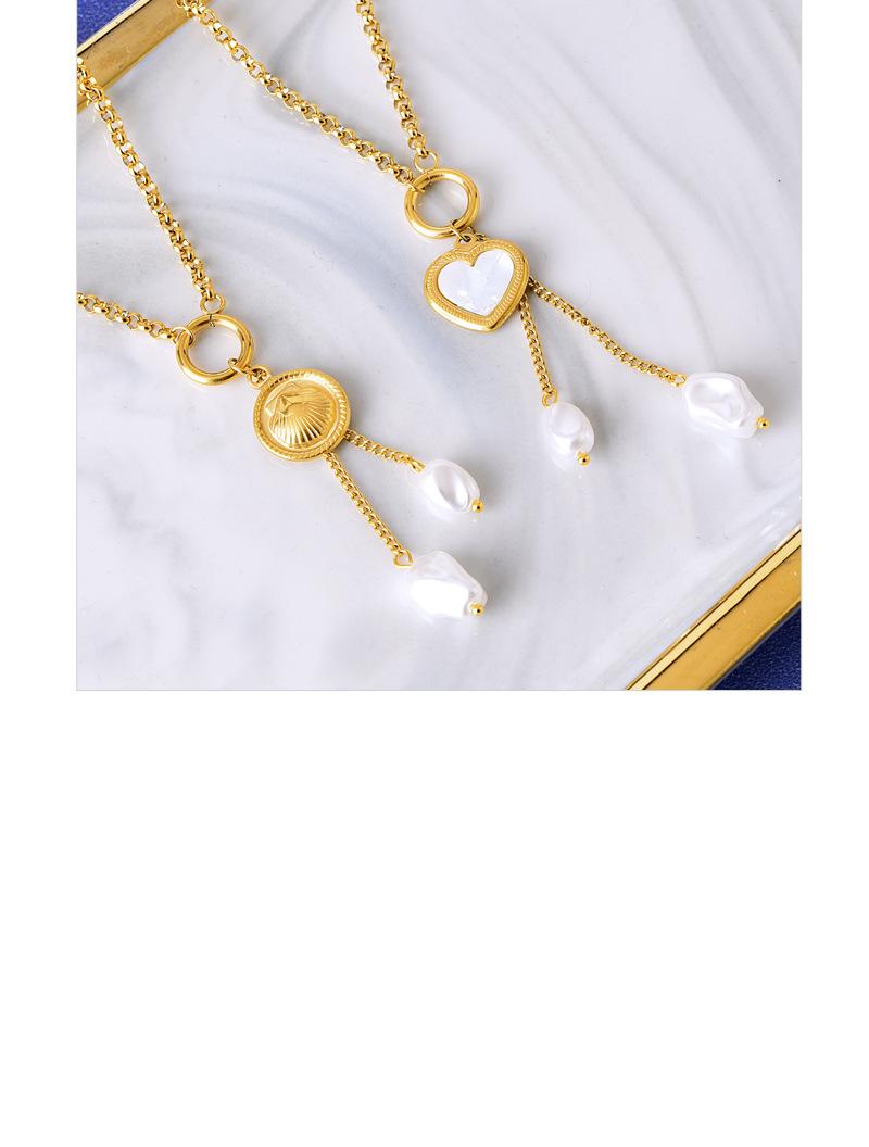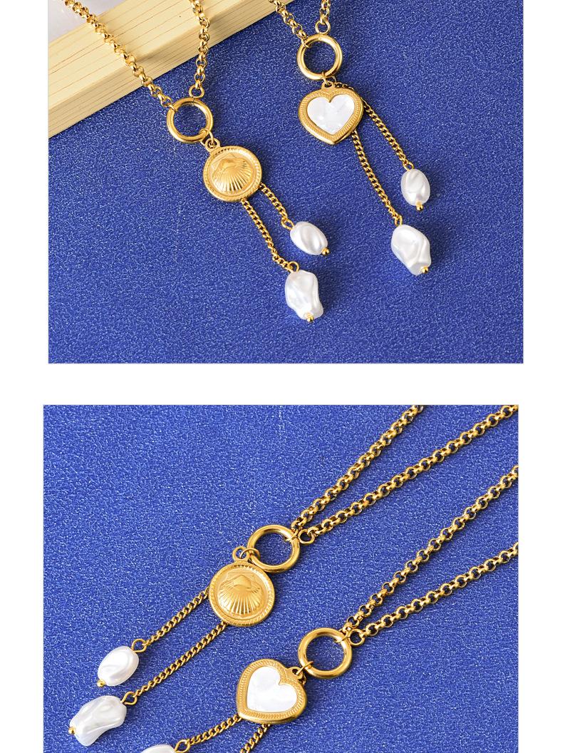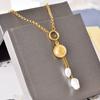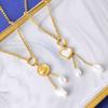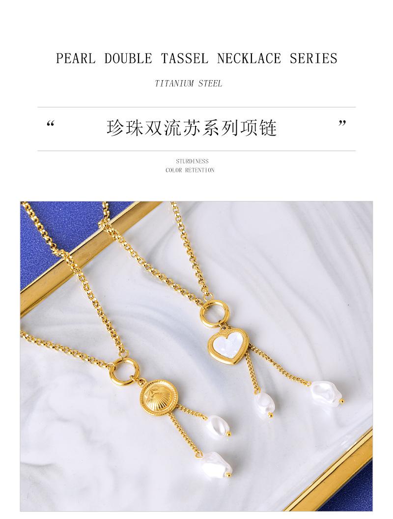 Collar de concha blanca con diseño de nicho, con diseño de amor, con borlas redondas de marca, cadena de clavícula de perla, para mujer, fabricante mayorista de acero de titanio.