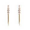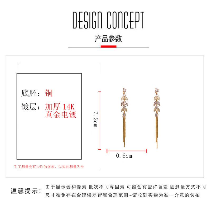 Zircon cat's eye stone leaves long tassel earrings (thick real gold plating)