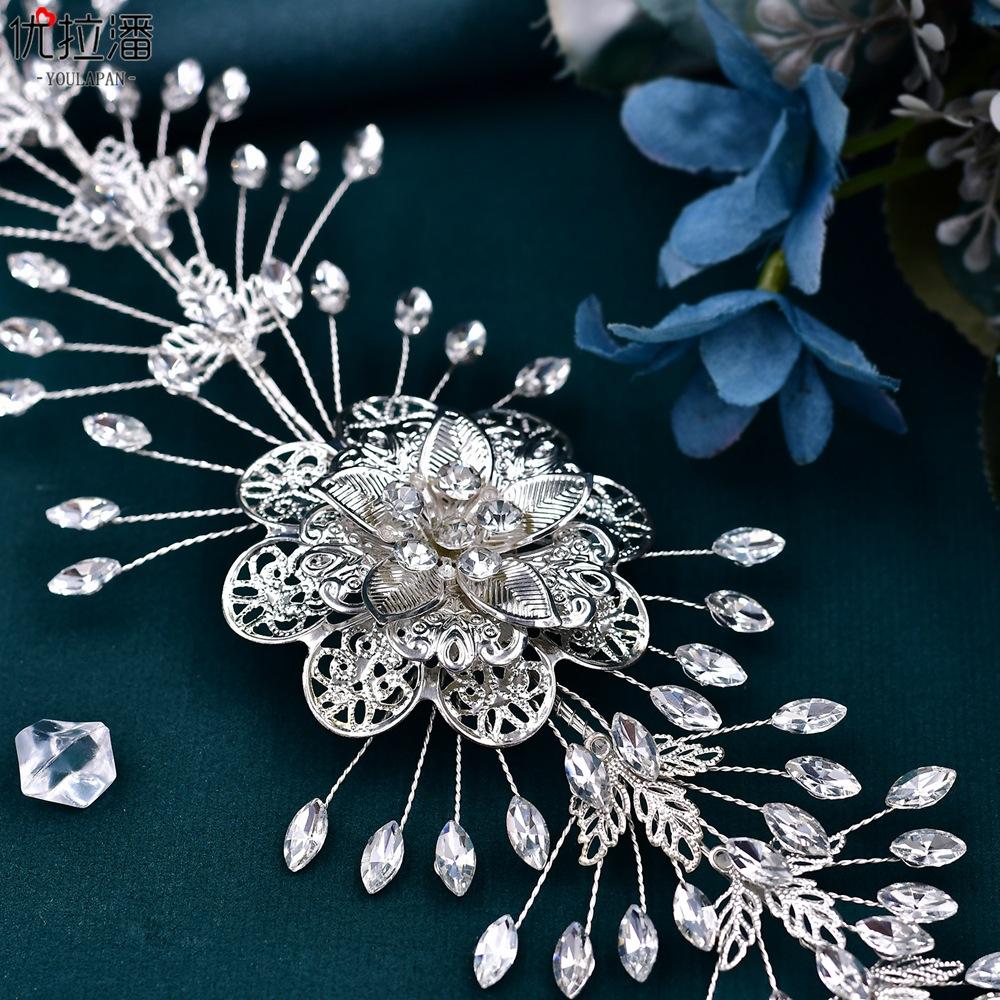 Youlapan Hp553 Accesorios para el Cabello para Vestido de Novia Hecho a Mano Europeo y Americano Diadema Nupcial Aleación Flor Incrustada Pedrería Tocado