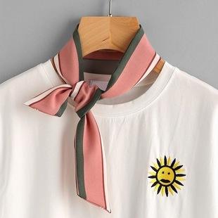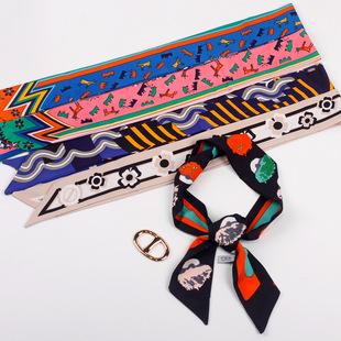 Bufanda de nuevo estilo 2018 para mujer bufanda pequeña de seda rayas bufanda pequeña coreana versátil moderna bufanda de seda delgada cinta envuelta tiras largas
