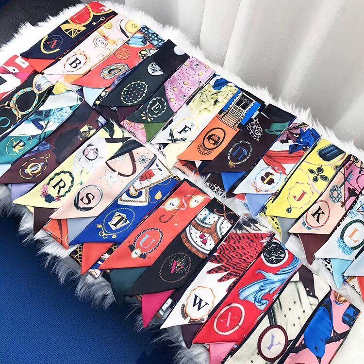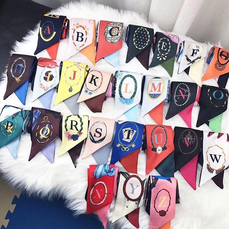 Una variedad de 26 letras Torre seda artificial cinta pequeña bufanda de seda atada asa de bolso banda para el cabello cinta delgada estrecha