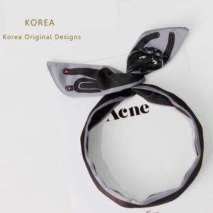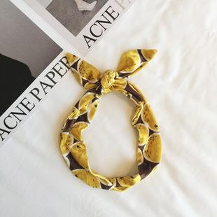 Diadema de dibujos animados simple de estilo chic orejas de conejo alambre accesorios para el cabello pañuelo pequeño pañuelo de seda decoración pequeño pañuelo que combina con todo doble uso
