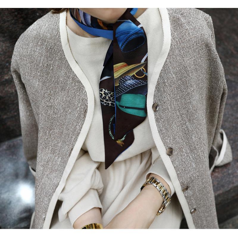 Estilo simple primavera y otoño versátil profesional pequeño pañuelo de seda pañuelo decorativo pañuelo pequeño pañuelo de cabeza mujeres envuelto asa de bolso diadema