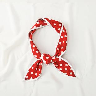 Douyin mismo estilo lunares ins cinta de gasa pañuelo de seda pequeño corbata estrecha bolsa pañuelo pequeño lunares blanco y negro pañuelo pequeño