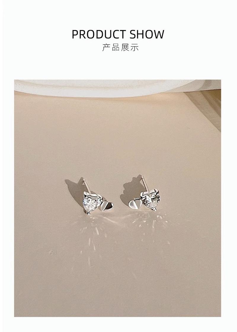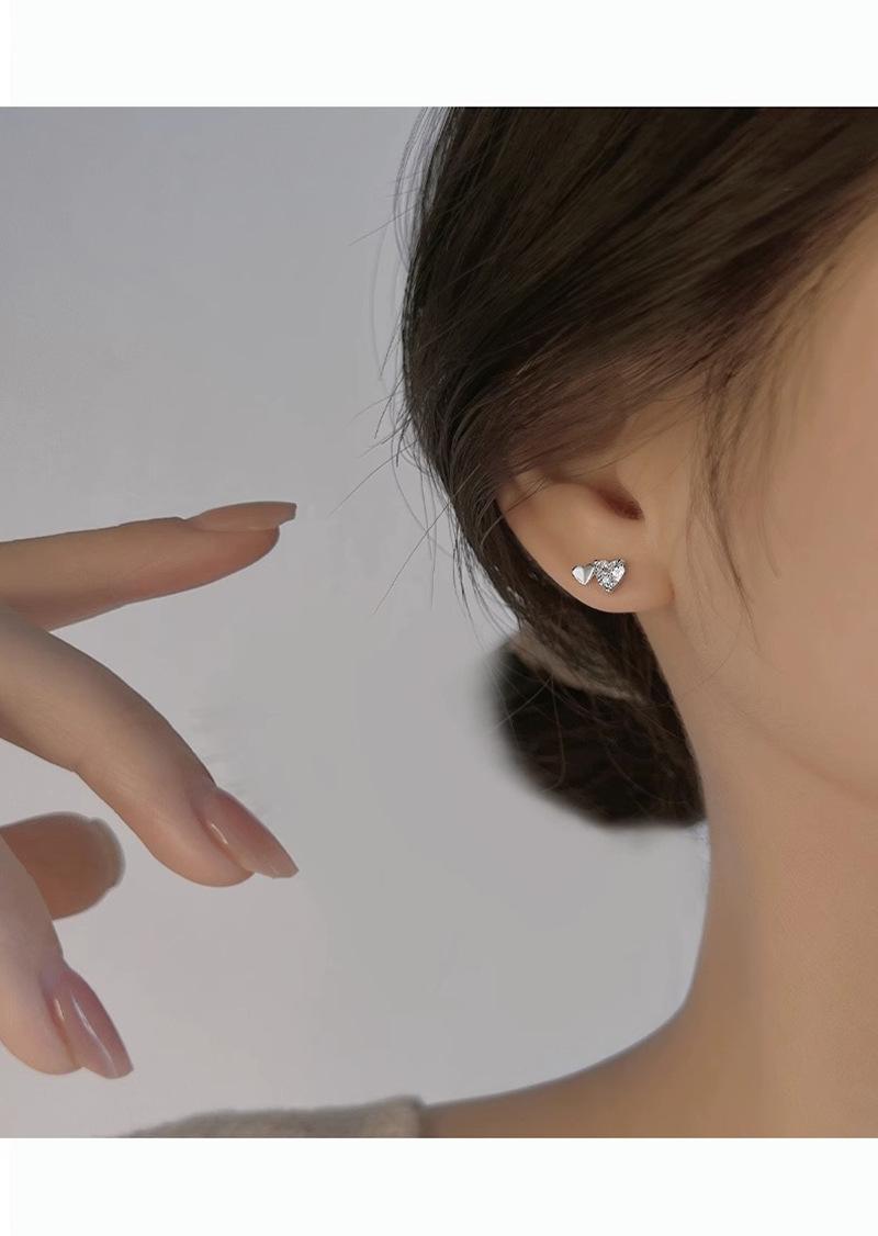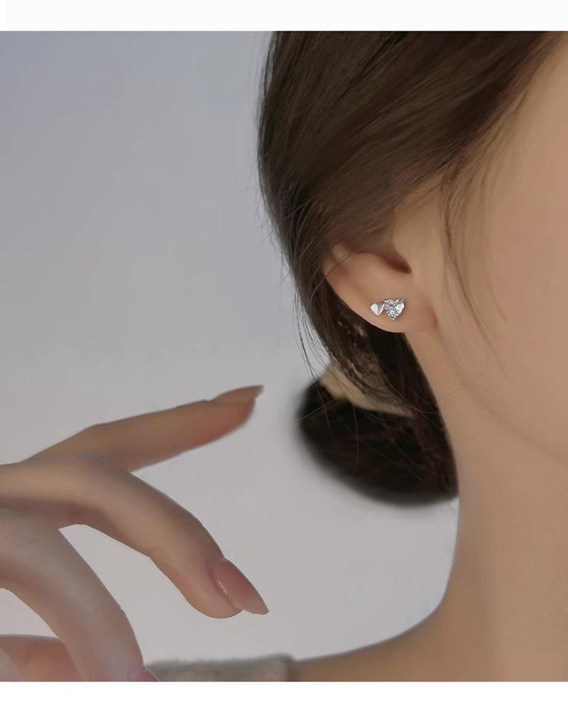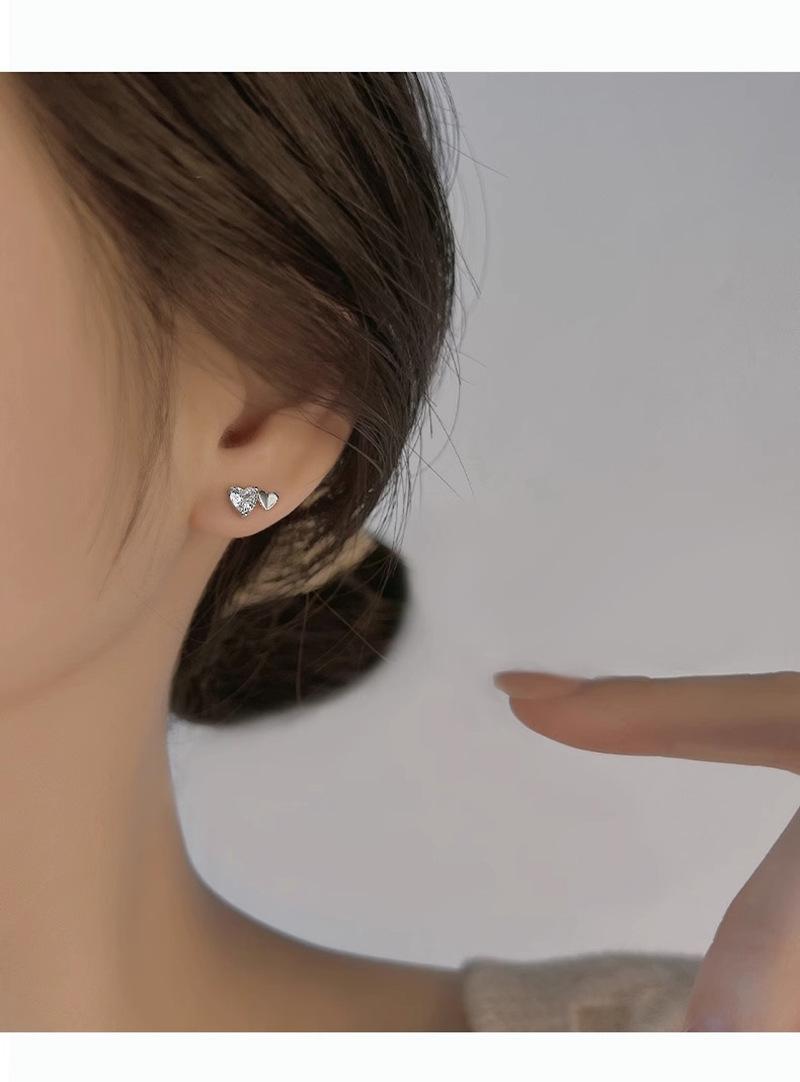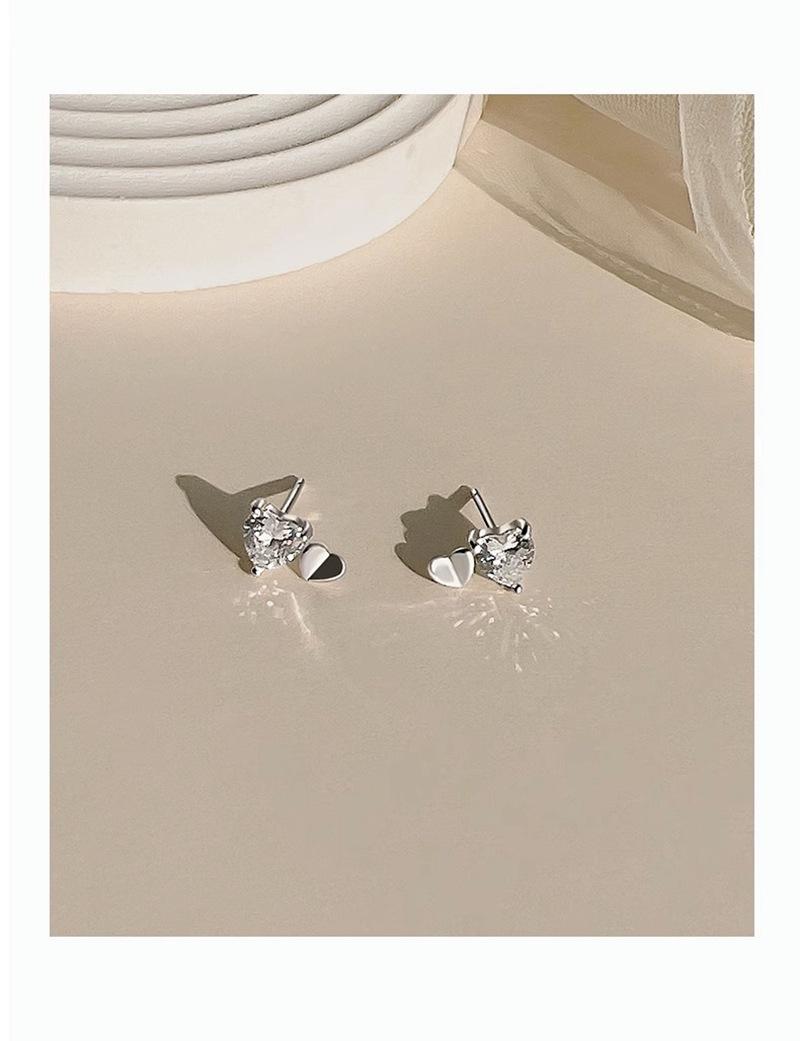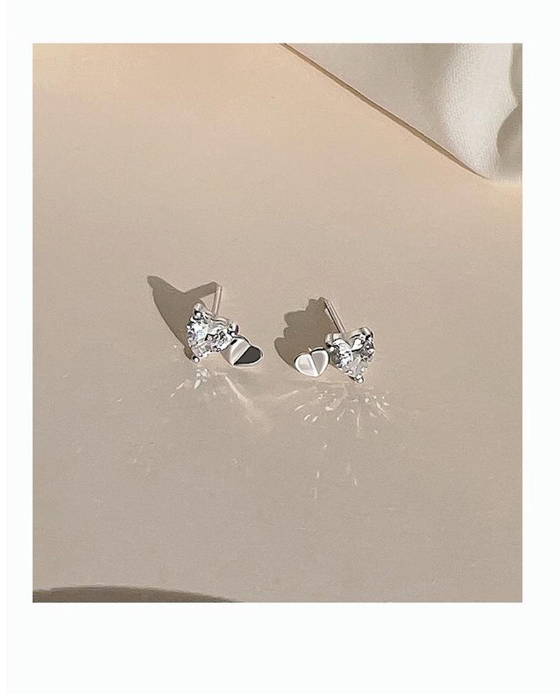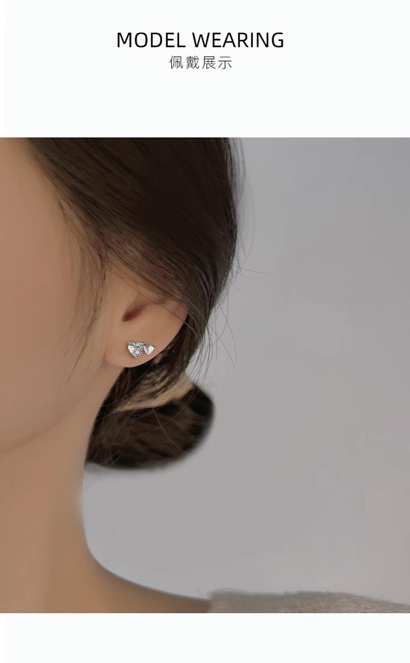Pendientes de circonita con forma de corazón para mujer, pequeños agujeros en las orejas, temperamento simple, para dormir sin tocarse.
