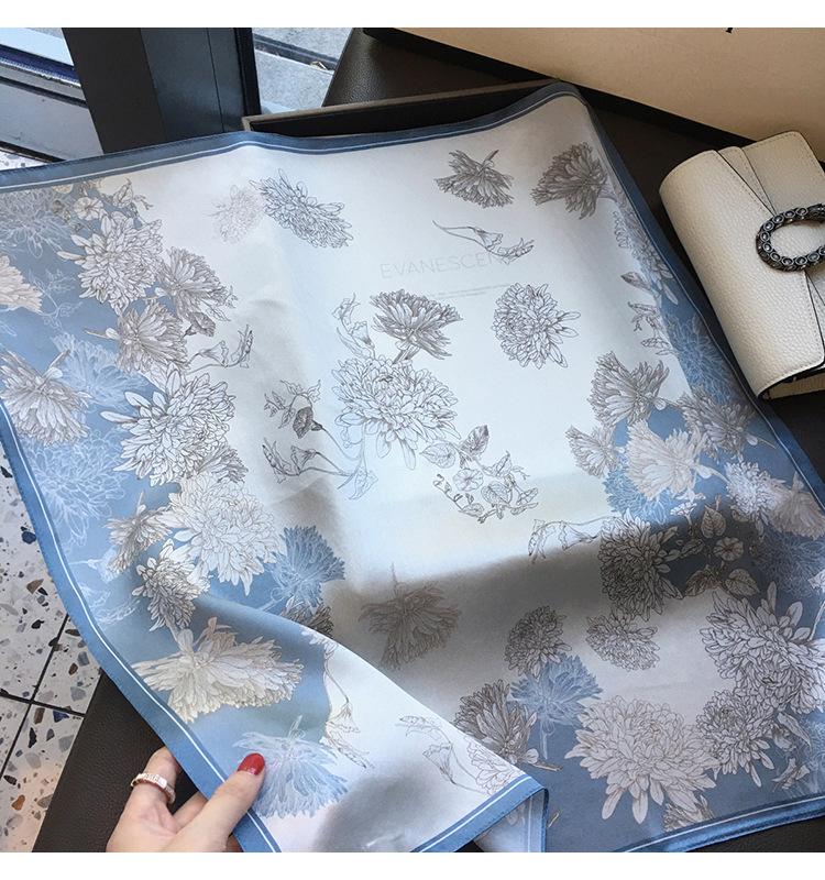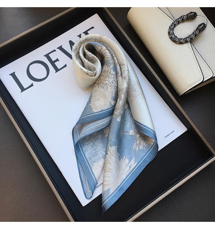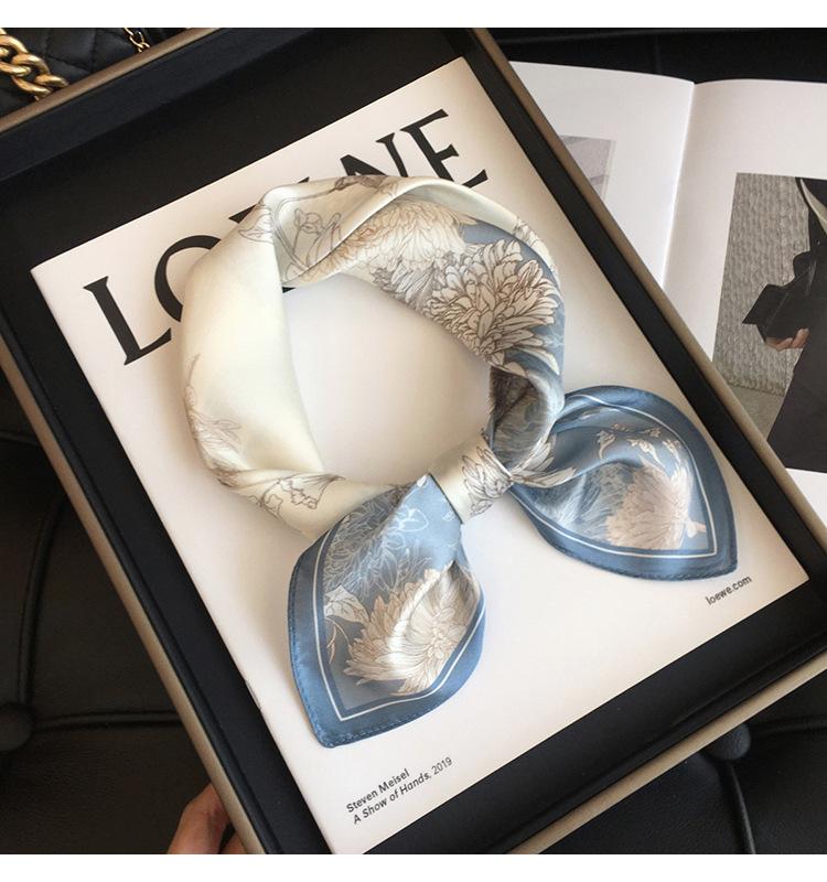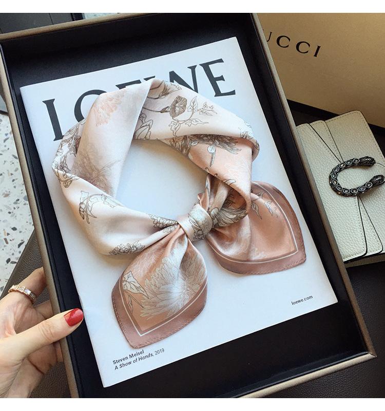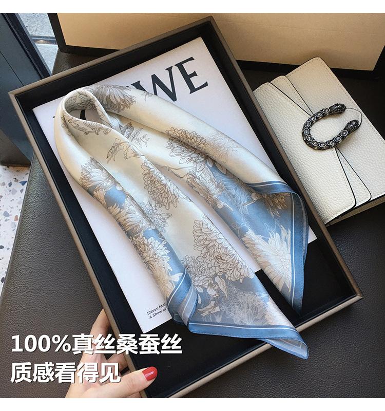 Pañuelo cuadrado pequeño para mujer, elegante y combinable de seda con flores, 100 % seda morera, decorativo, popular en Internet.