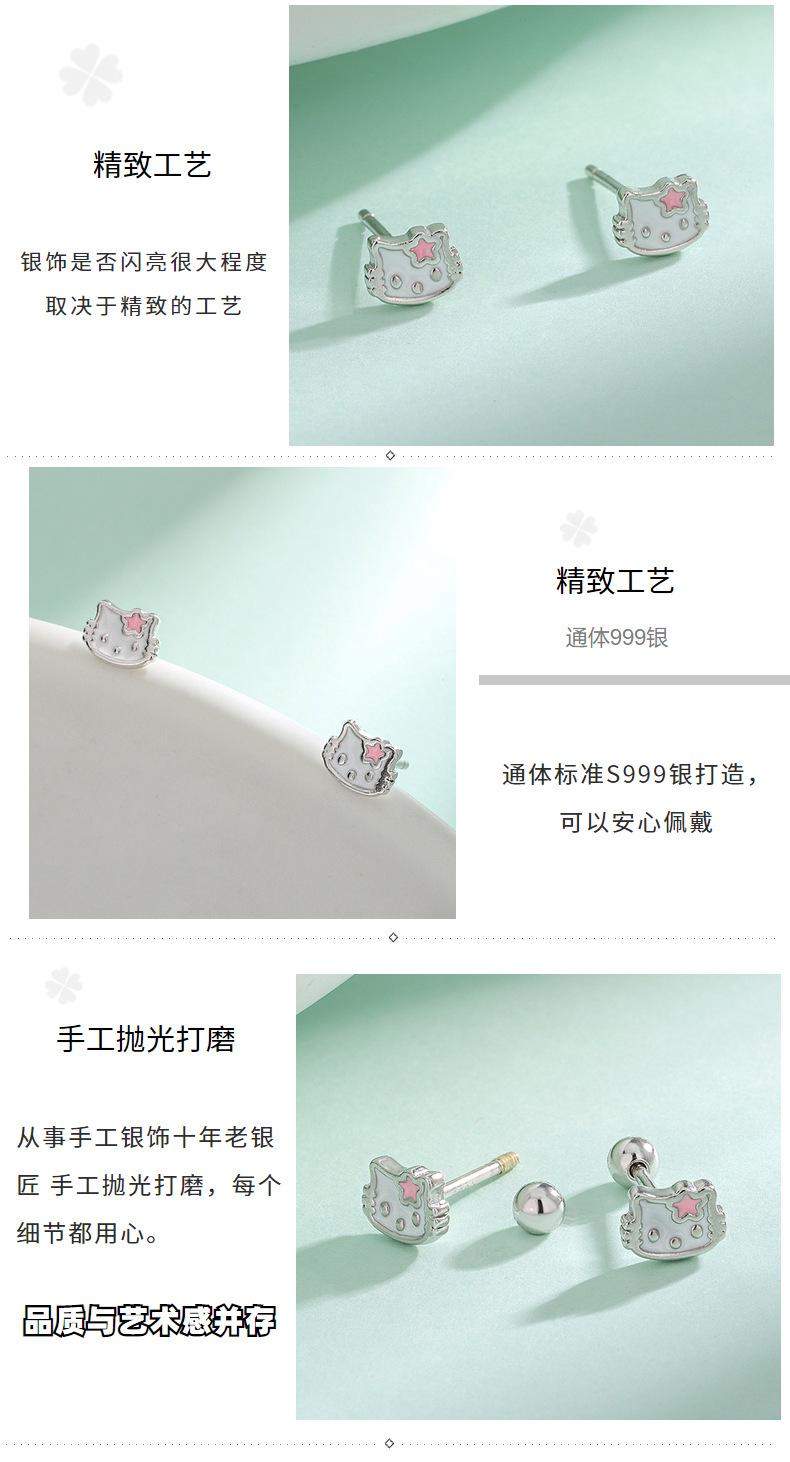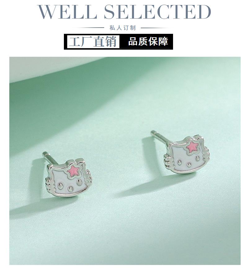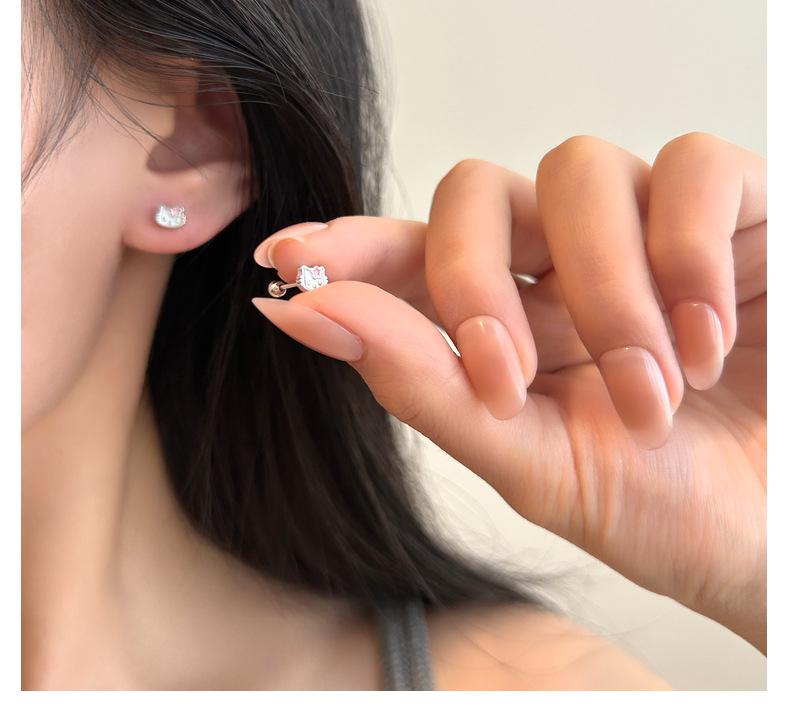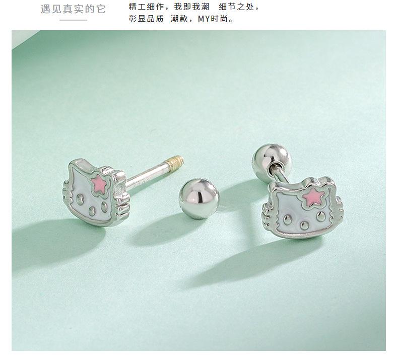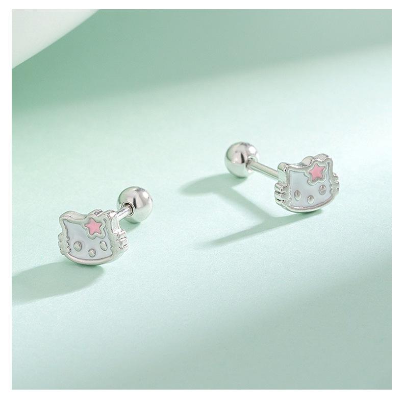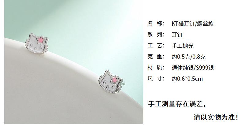 Aretes de Tuerca de Gato Kt de Plata Pura S999 para Mujer, Aretes Lindos y Dulces para Perforación de Oreja, Aretes Animales de Plata Pura de Lujo Ligero