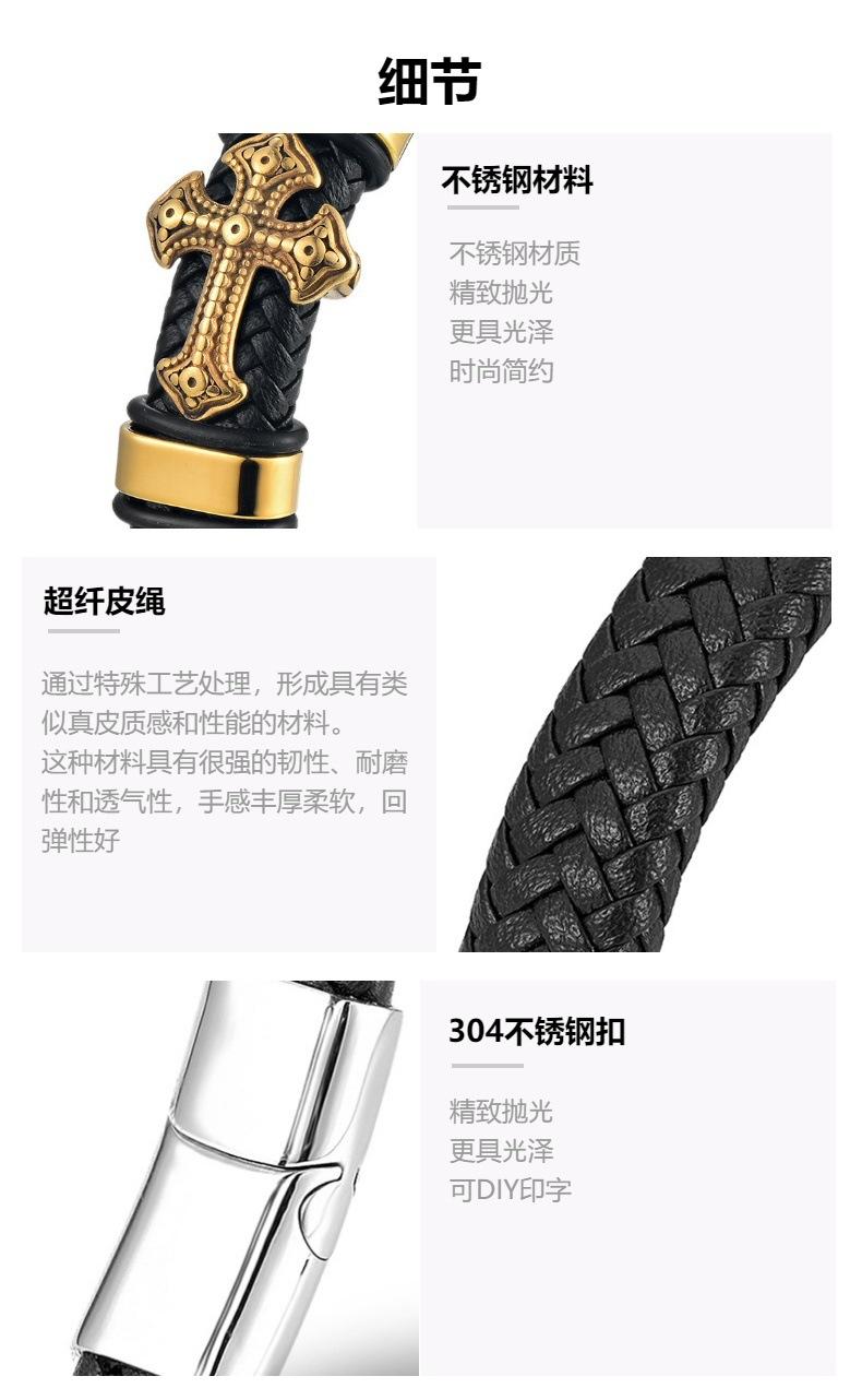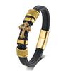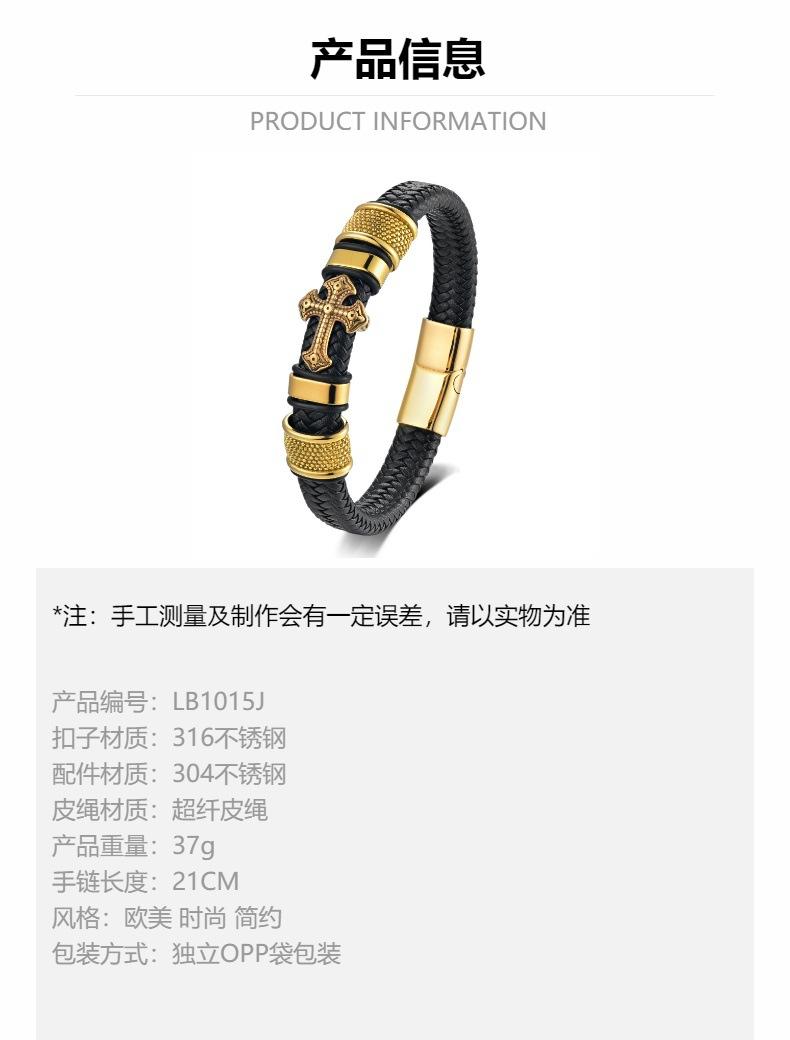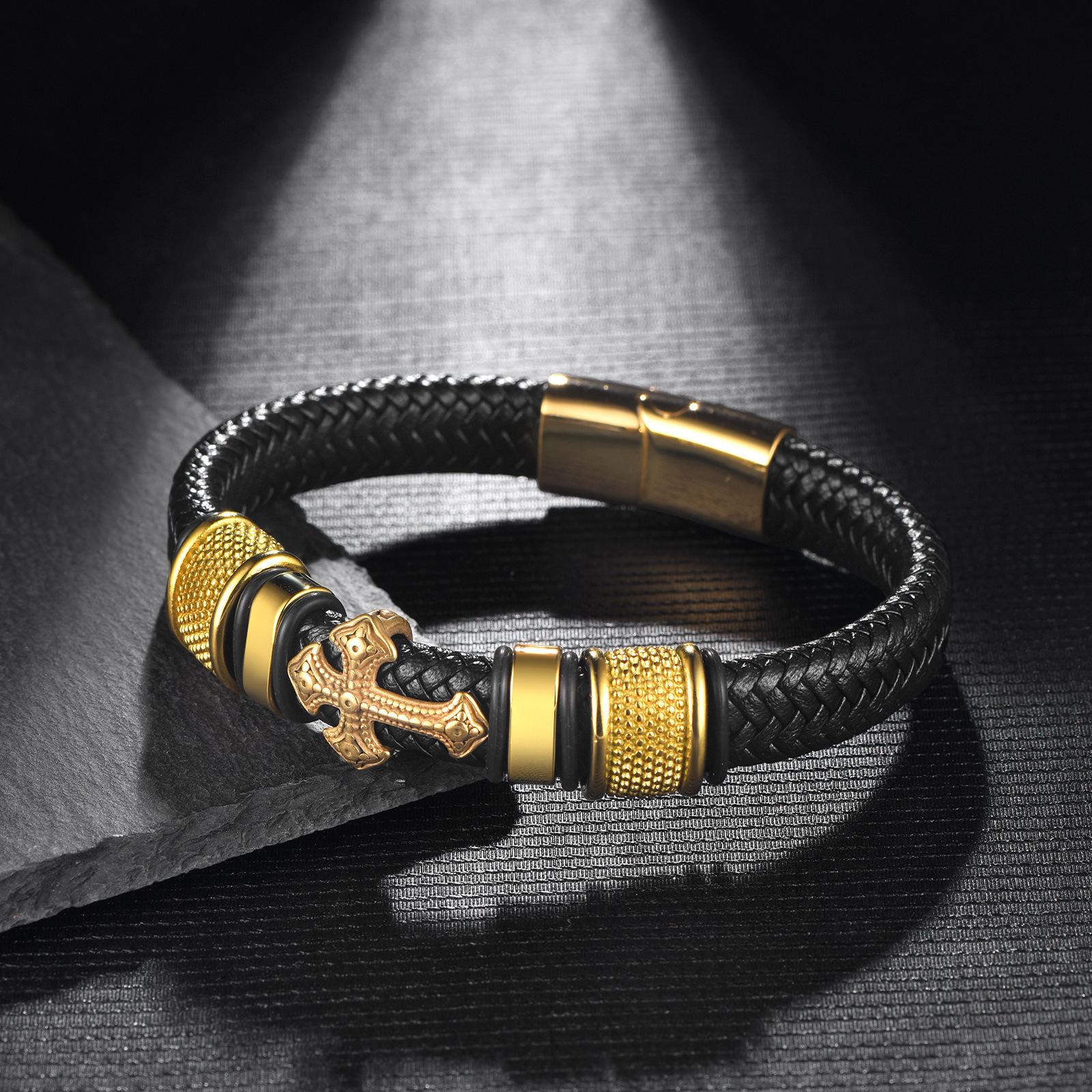 Pulsera de cuero tejida a mano, de gran oferta transfronteriza, nueva pulsera de cuero vintage con cruz dorada de moda para hombre.