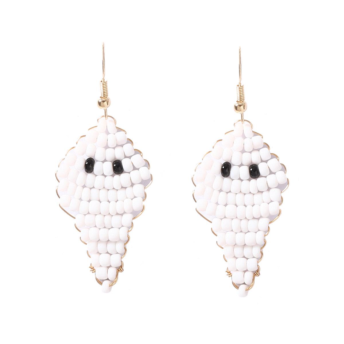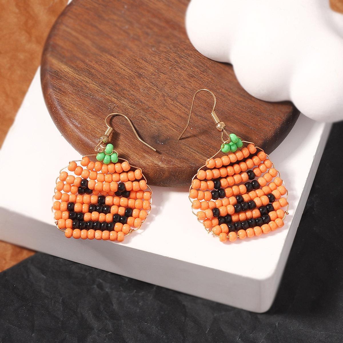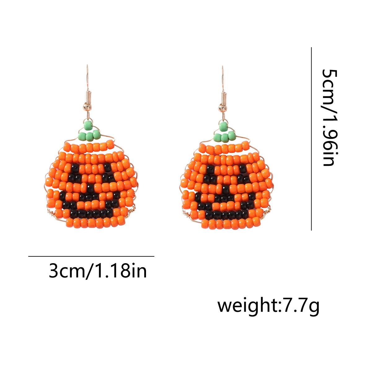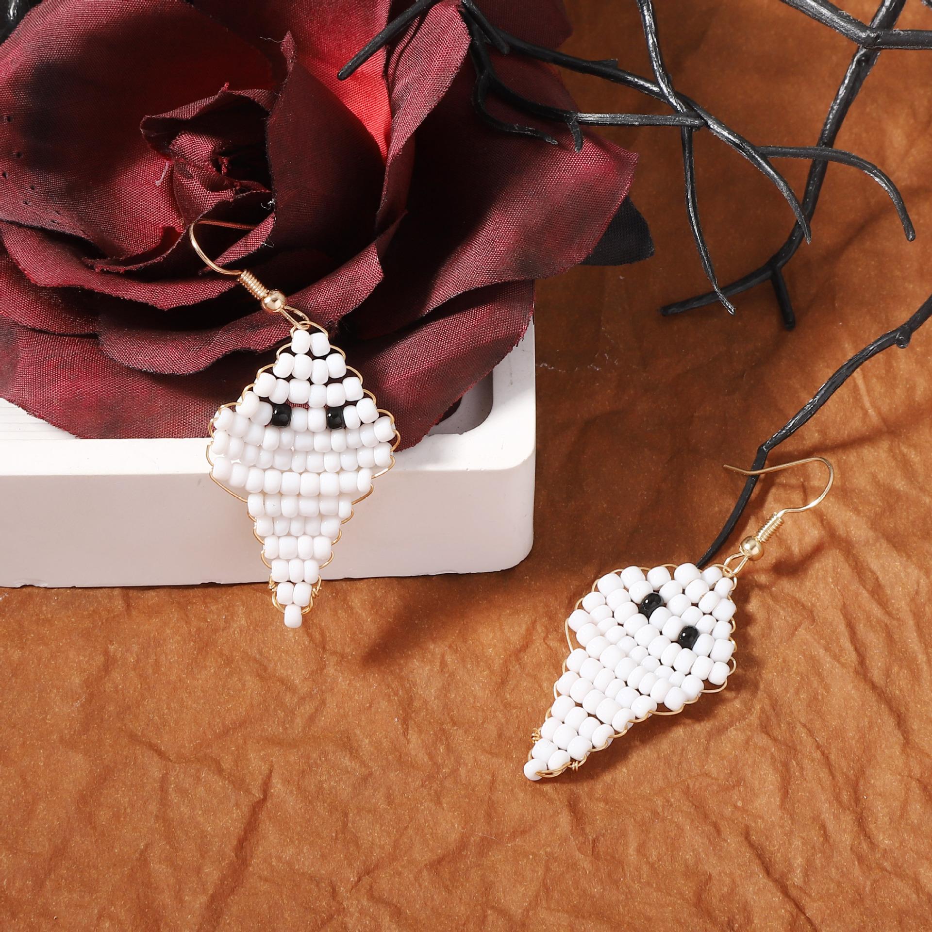 Nuevo Halloween Transfronterizo Nicho Personalizado Hecho a Mano Cuentas de Arroz Tejido Aretes de Fantasma de Calabaza Estilo Creativo de Moda