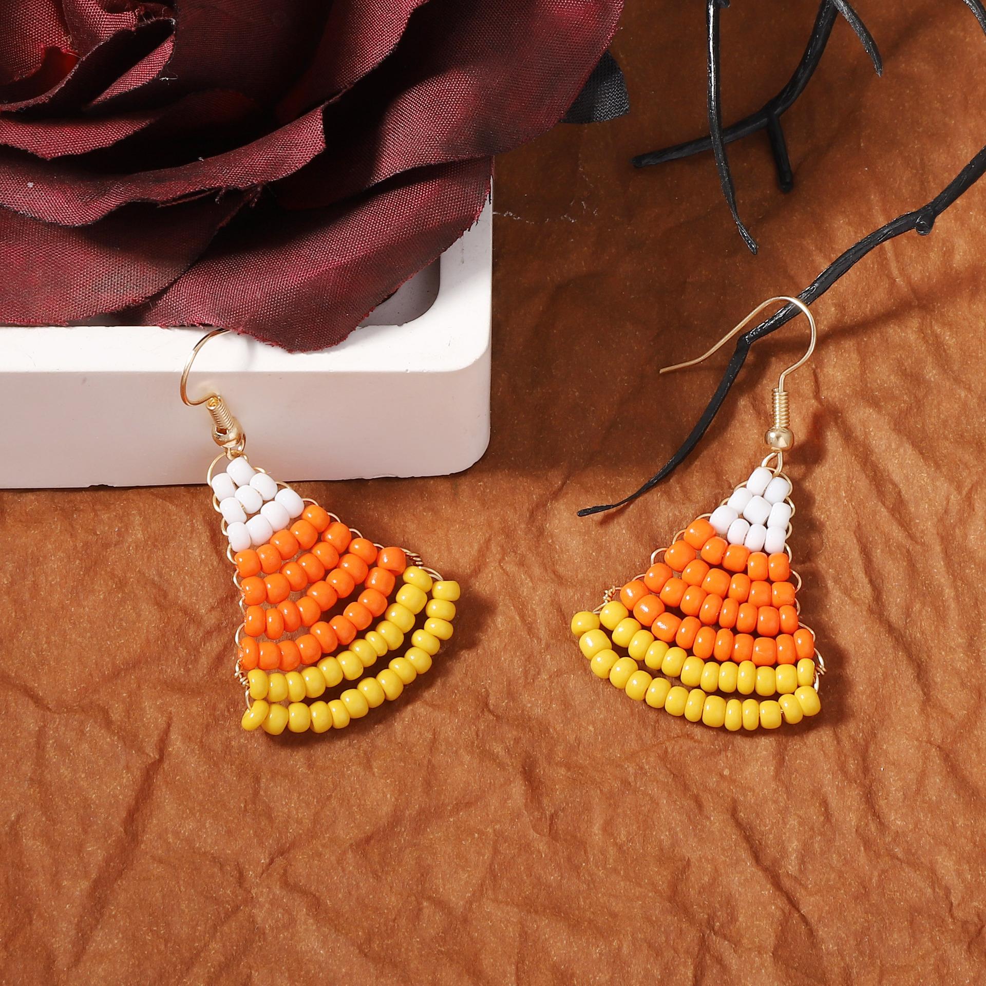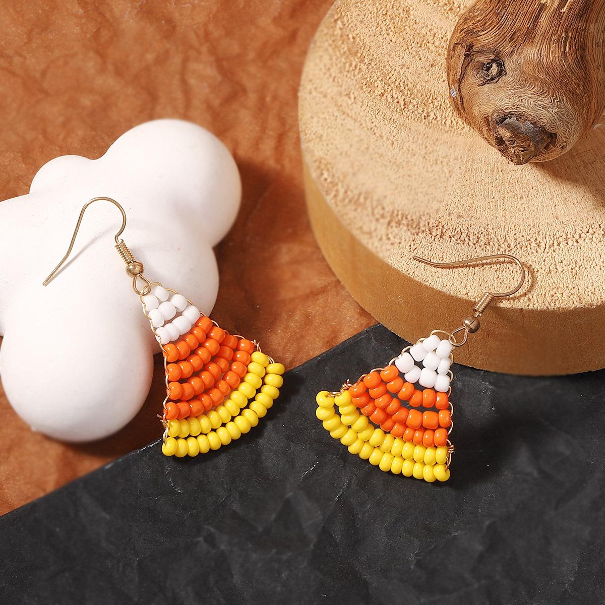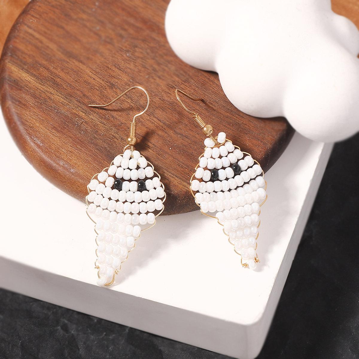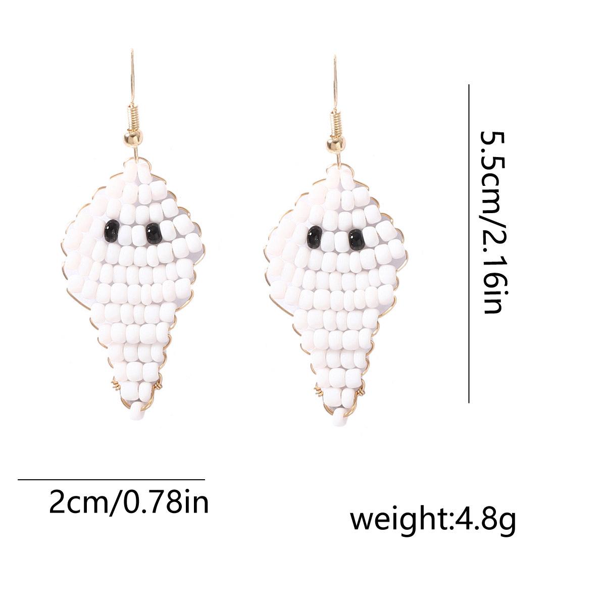 Nuevo Halloween Transfronterizo Nicho Personalizado Hecho a Mano Cuentas de Arroz Tejido Aretes de Fantasma de Calabaza Estilo Creativo de Moda