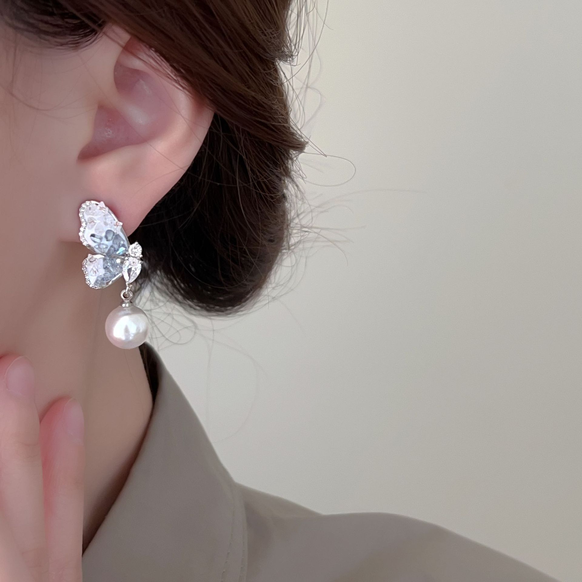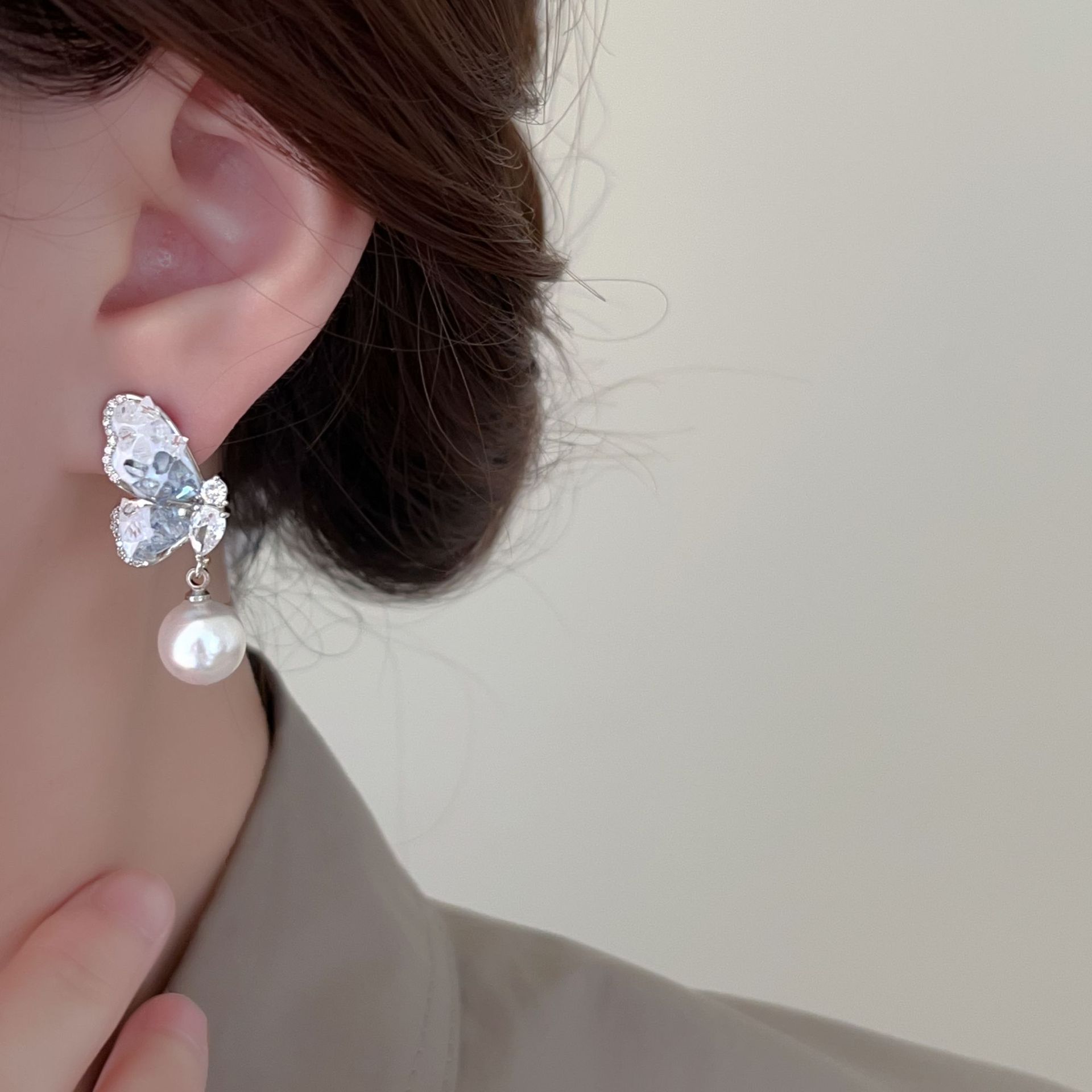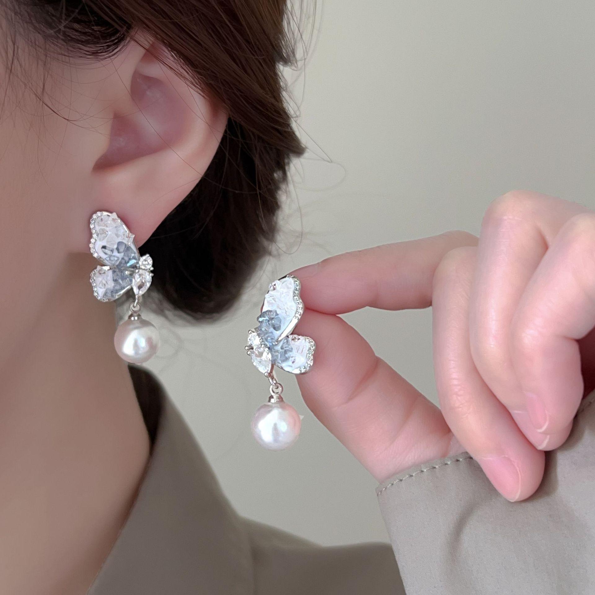 Pendientes de mariposa de cristal degradado azul Morandi para mujer, diseño retro, personalizados y combinables.