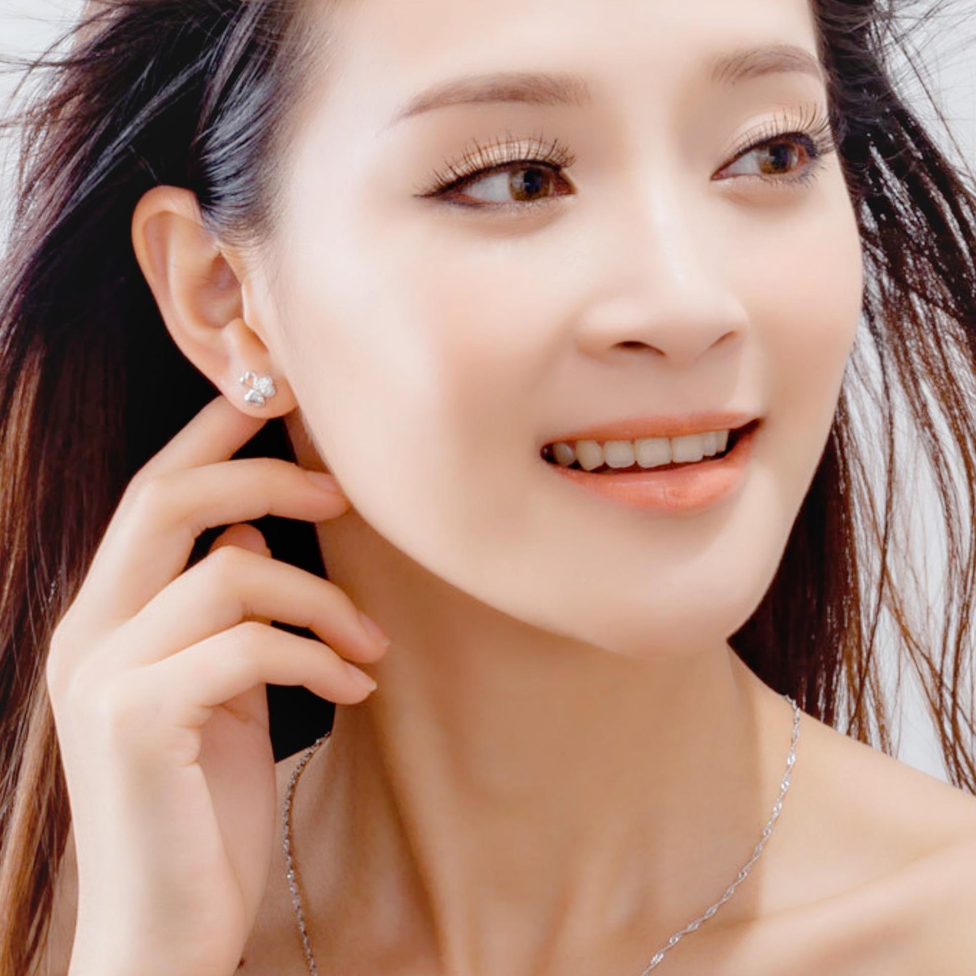 Pendientes de trébol más vendidos de Jin Jiahua, pendientes coreanos de moda con forma de flor de tres hojas y amor, venta al por mayor